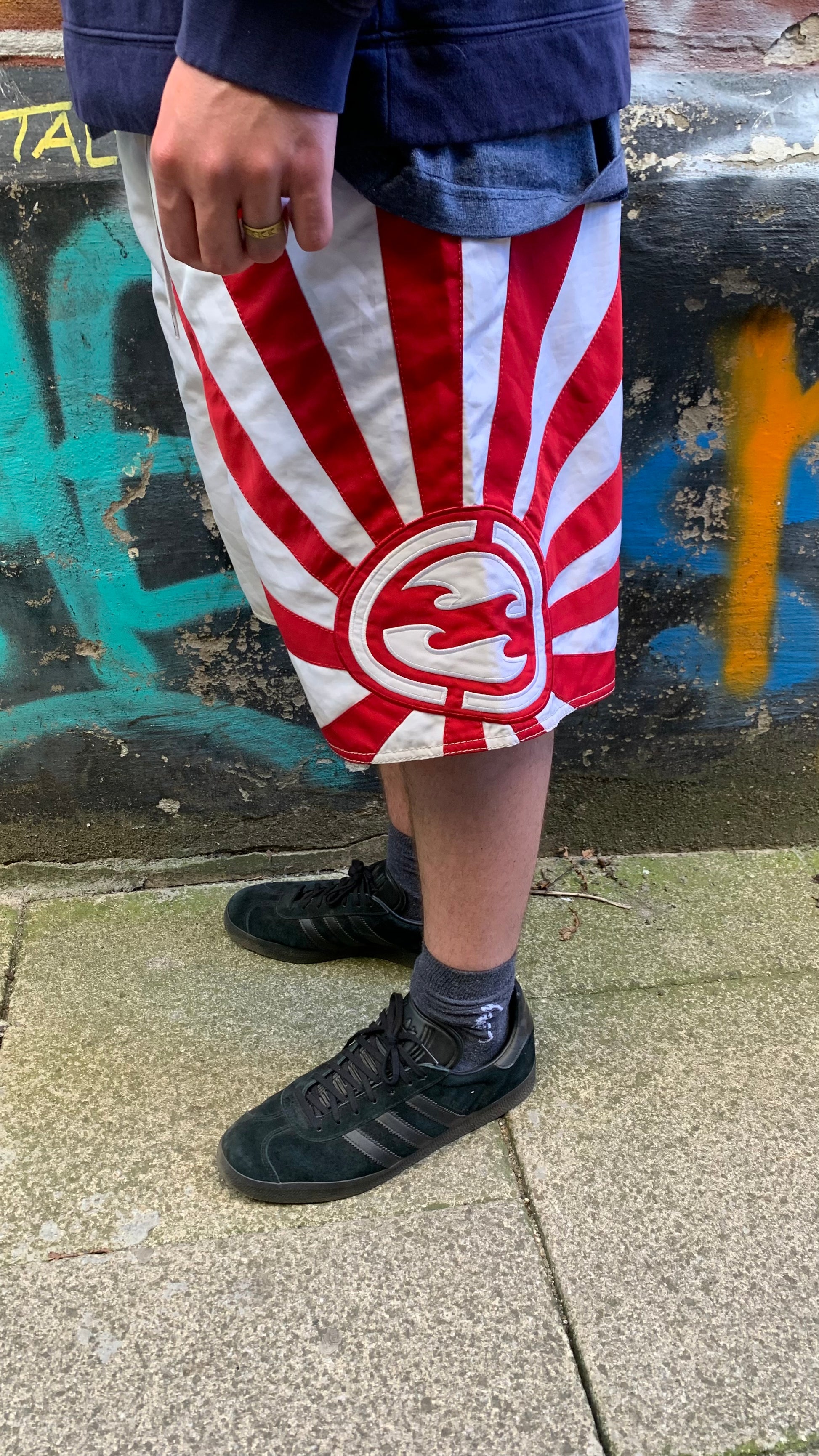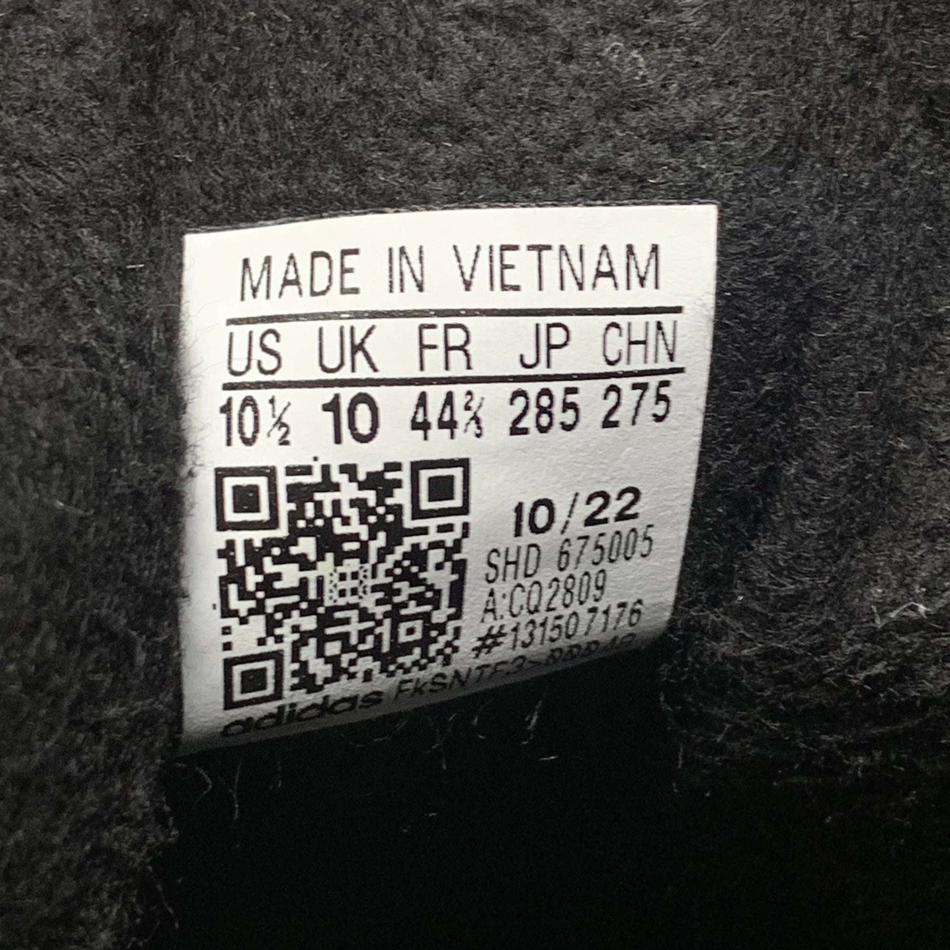 Coloured black all over, triple stripe branding on the outside of the shoes, gum soles & in excellent second hand condition with a stain on the sole.