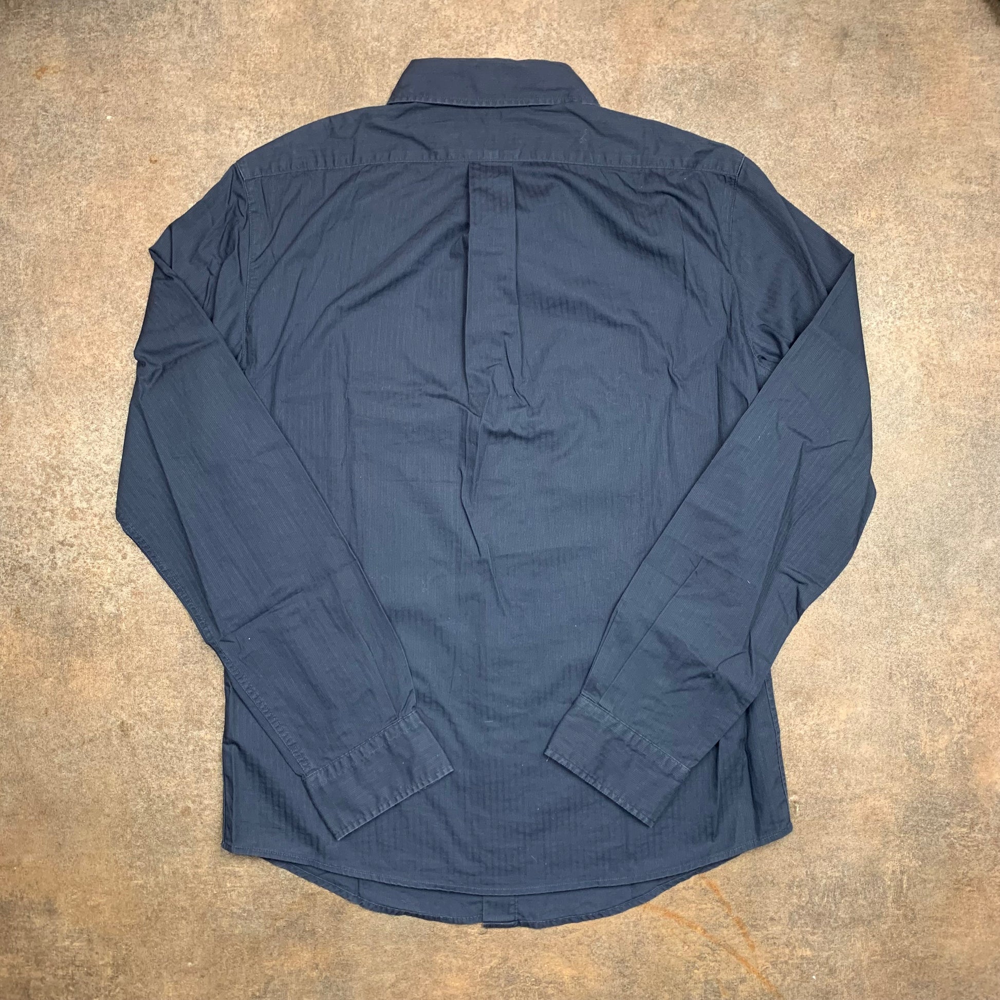 Vintage Armani button down with a branded tab on the front pocket, coloured navy all over, detailed buttons & in excellent second hand condition with little to no wear.