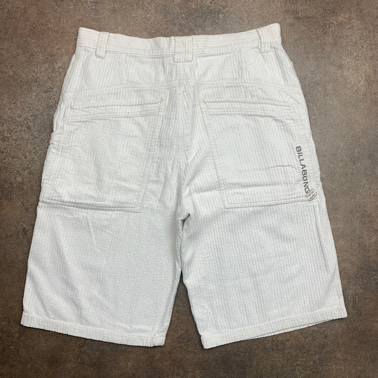 Baggy pair of vintage shorts made from a cotton heavy corduroy blend, coloured white all over, massive back pockets with logo embroidery on the right back pocket and in good second hand condition with small marks as shown.