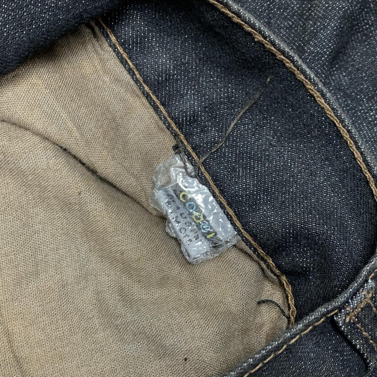 Old Coogi jeans with a large embroidered logo on the back left pocket, a leather patch at the top of the back, coloured navy all over & in very good second hand condition with some marks as shown.