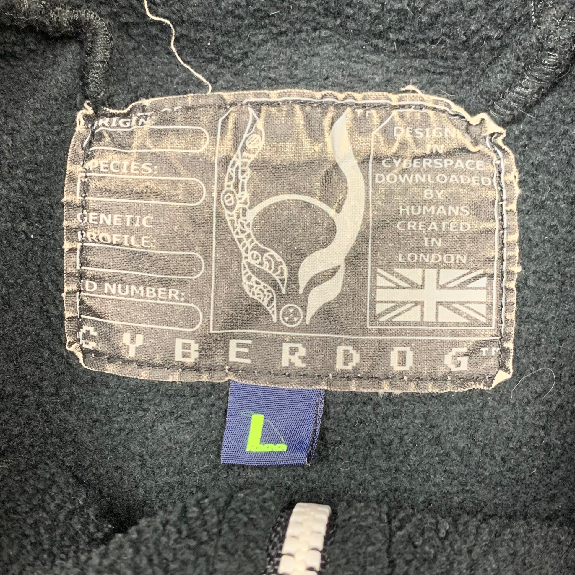 Rare Cyberdog hoodie from the Armour collection with armour detailing on the shoulders, a branded tab on the hood, branded zips, coloured black all over, made from a fleece fabric and in excellent second hand condition with minimal wear.
