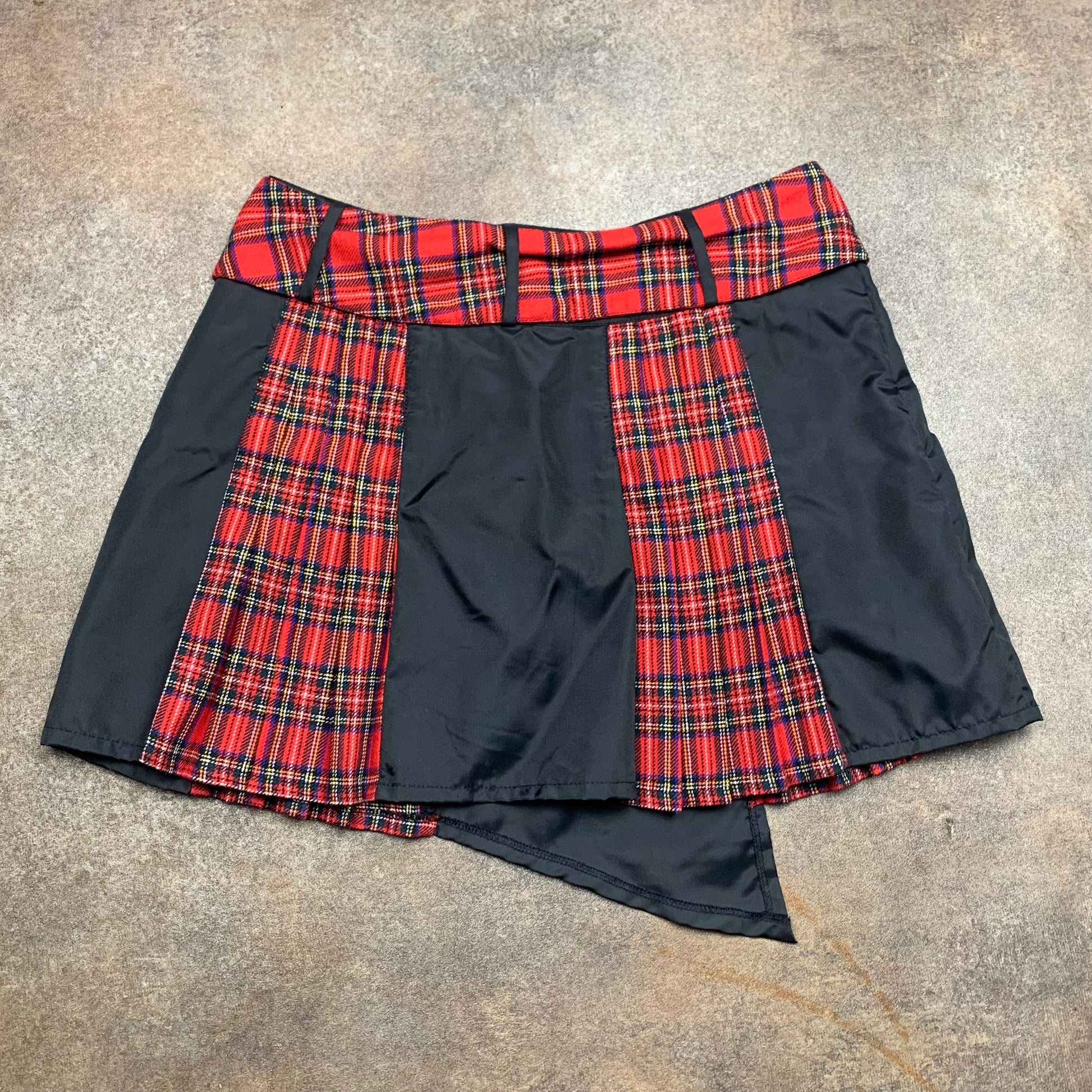 Vintage Cyberdog skirt with a branded tab on the side of the front, coloured black with plaid red detailing, built in belt & in excellent second hand condition with no signs of wear.