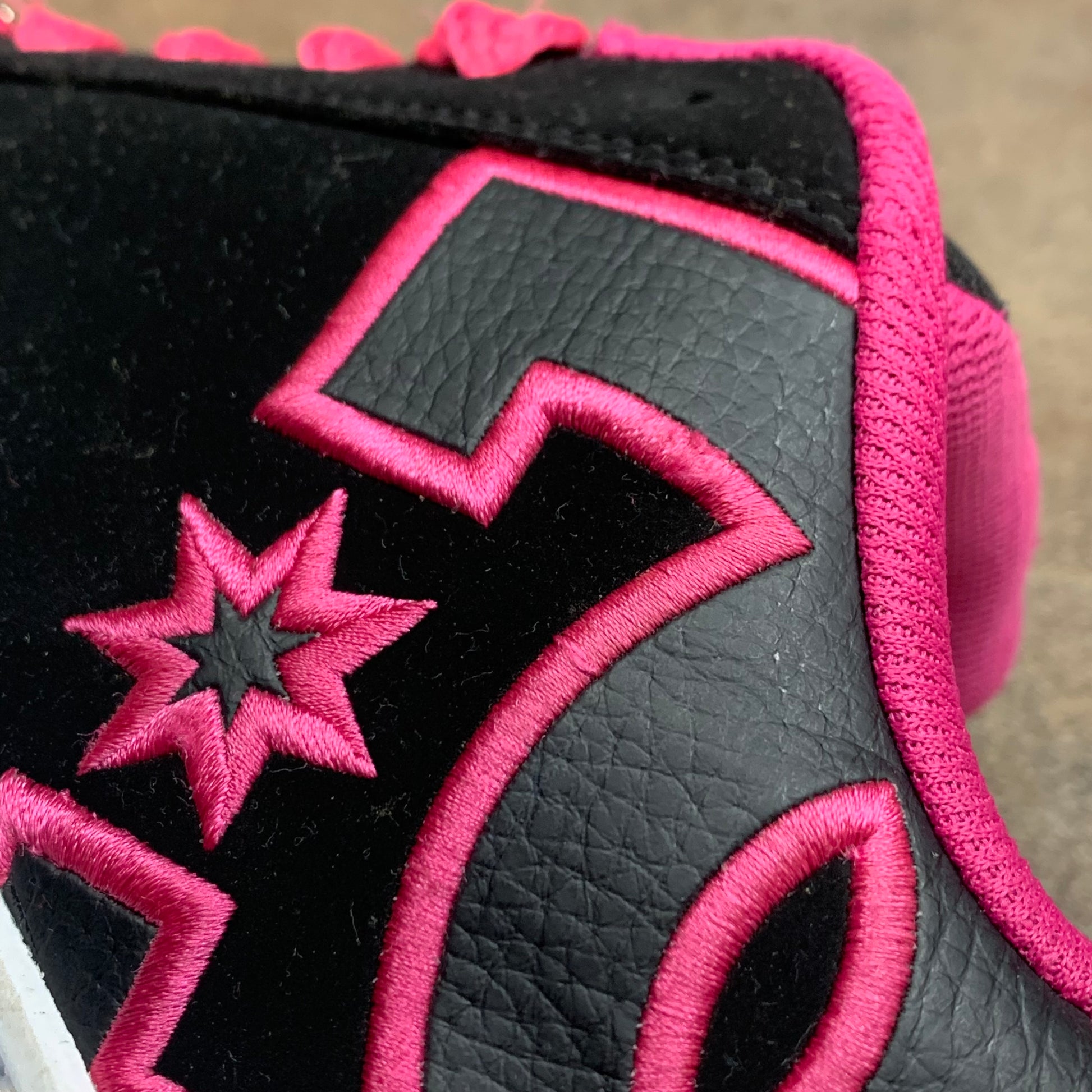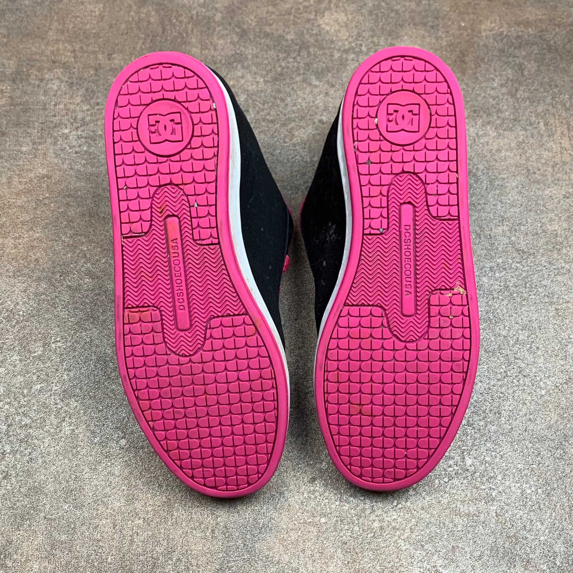 Vintage DC Court Graffiks with pyramid studs on the laces, leather big star logos, coloured black with pink / white detailing and in great second hand condition with marks as shown.
