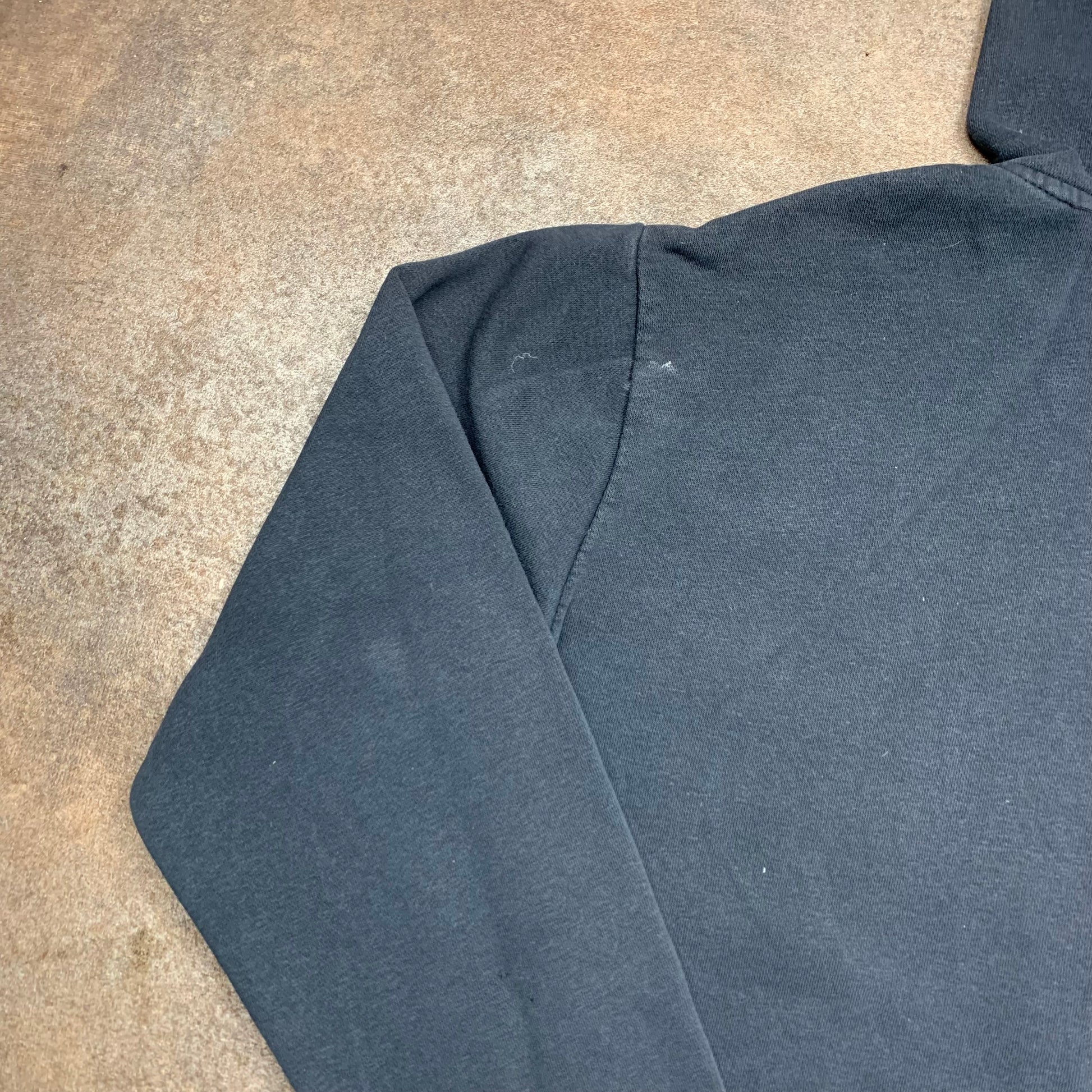 Vintage DC hoodie with a printed big star logo on the front in white, coloured black all over and in great second hand condition with some marks as shown, adding to the vintage look.