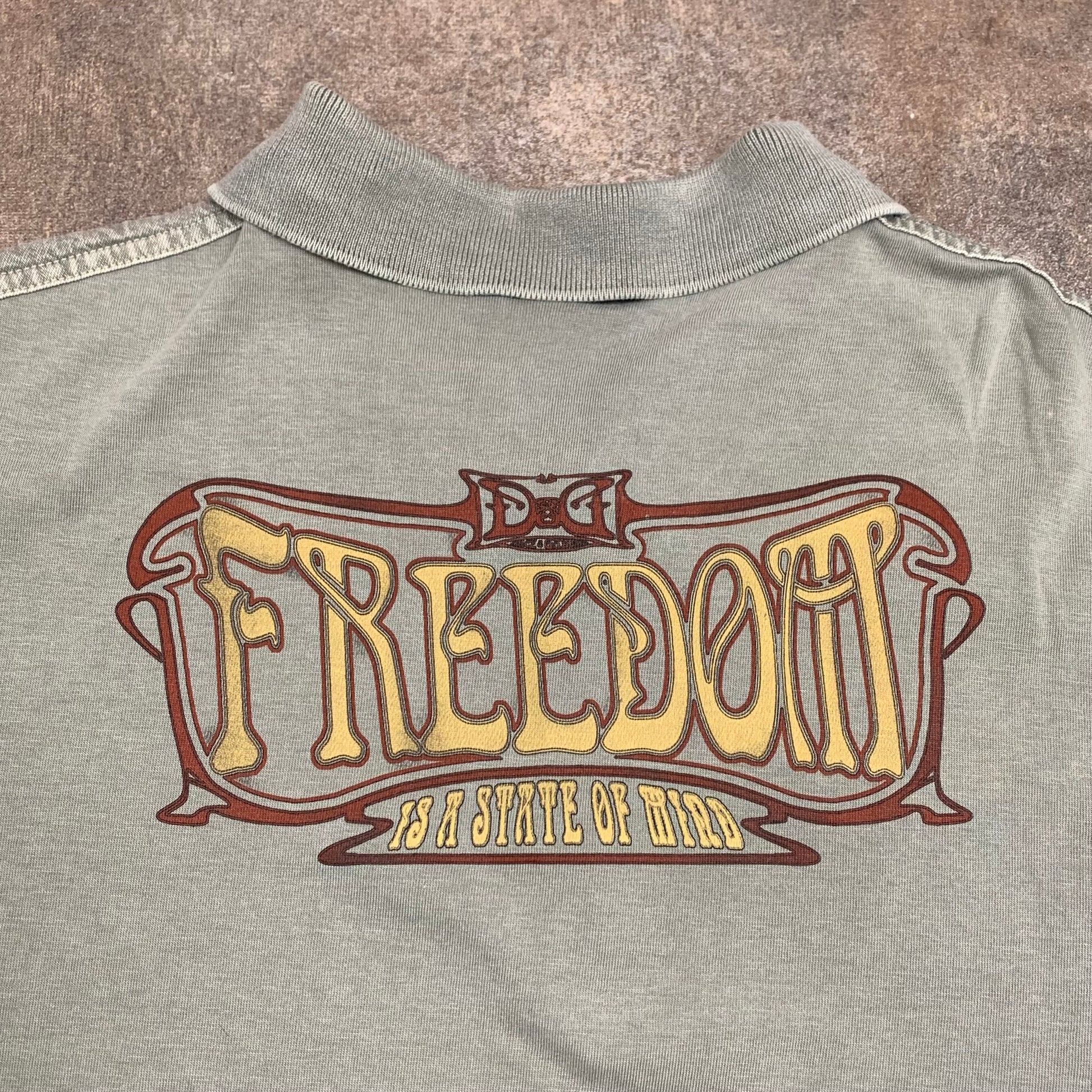 Vintage D&G slim fit polo with a large printed graphic on the back, branded tab on the sleeve cuff & in excellent second hand condition with some faint, barely noticeable marks at the bottom of the front.