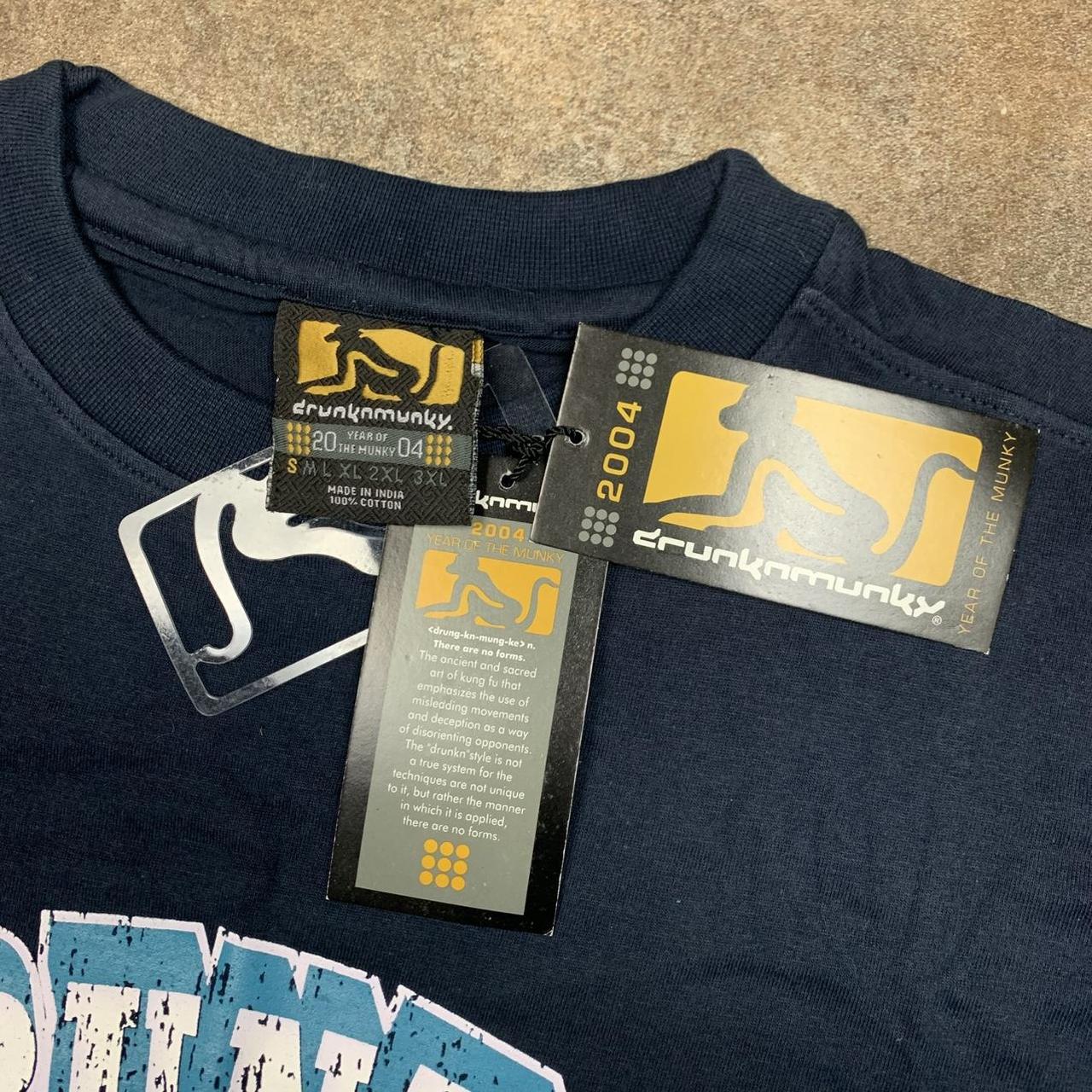 Sick Drunknmunky tee with printed graphics on the front & the left sleeve, coloured navy all over with some sun fading as shown & brand new with tags aside from fading.