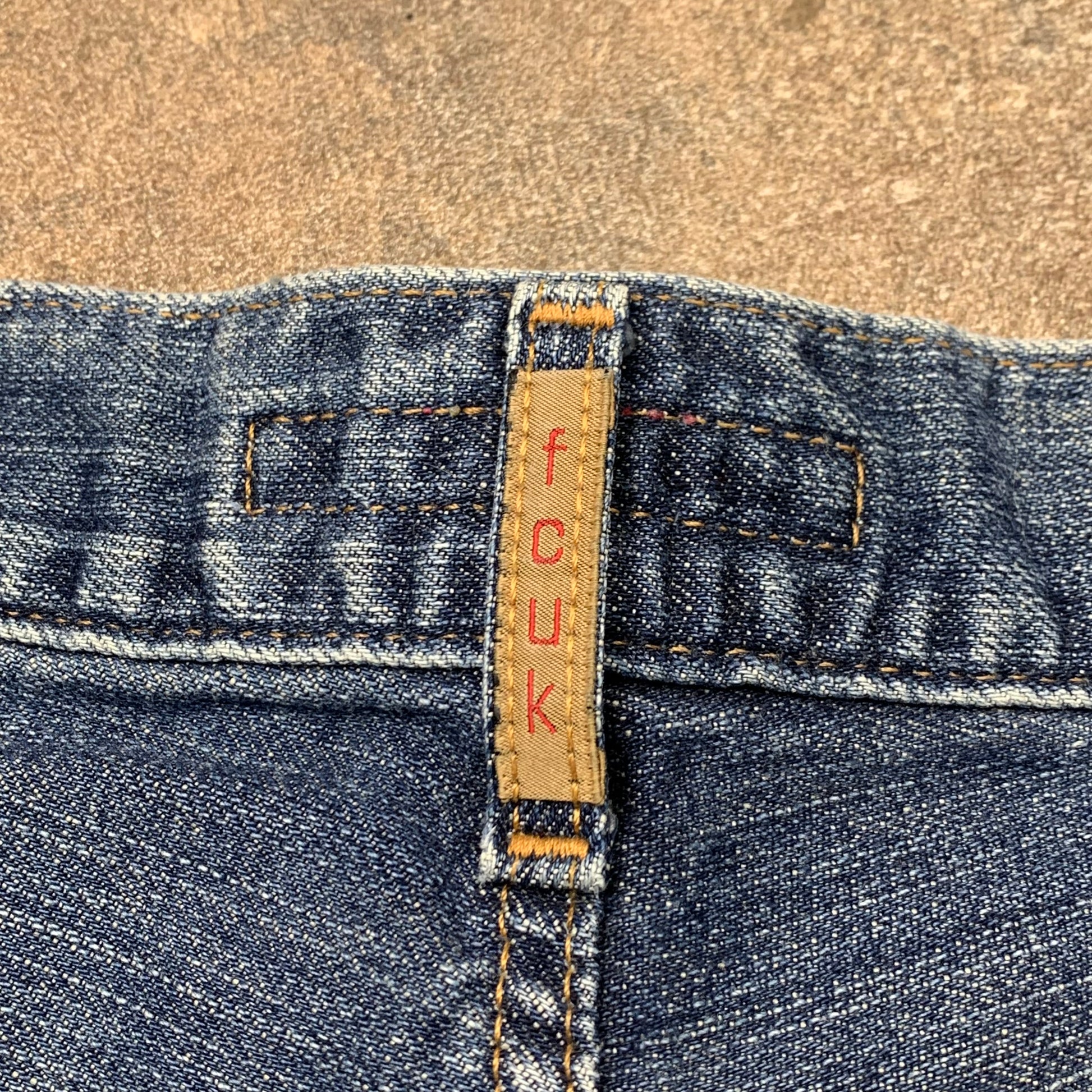 Vintage French Connection jeans with an embroidered logo on the back right pocket, branded tab on the back belt loop, coloured washed navy and in excellent second hand condition with minimal wear.