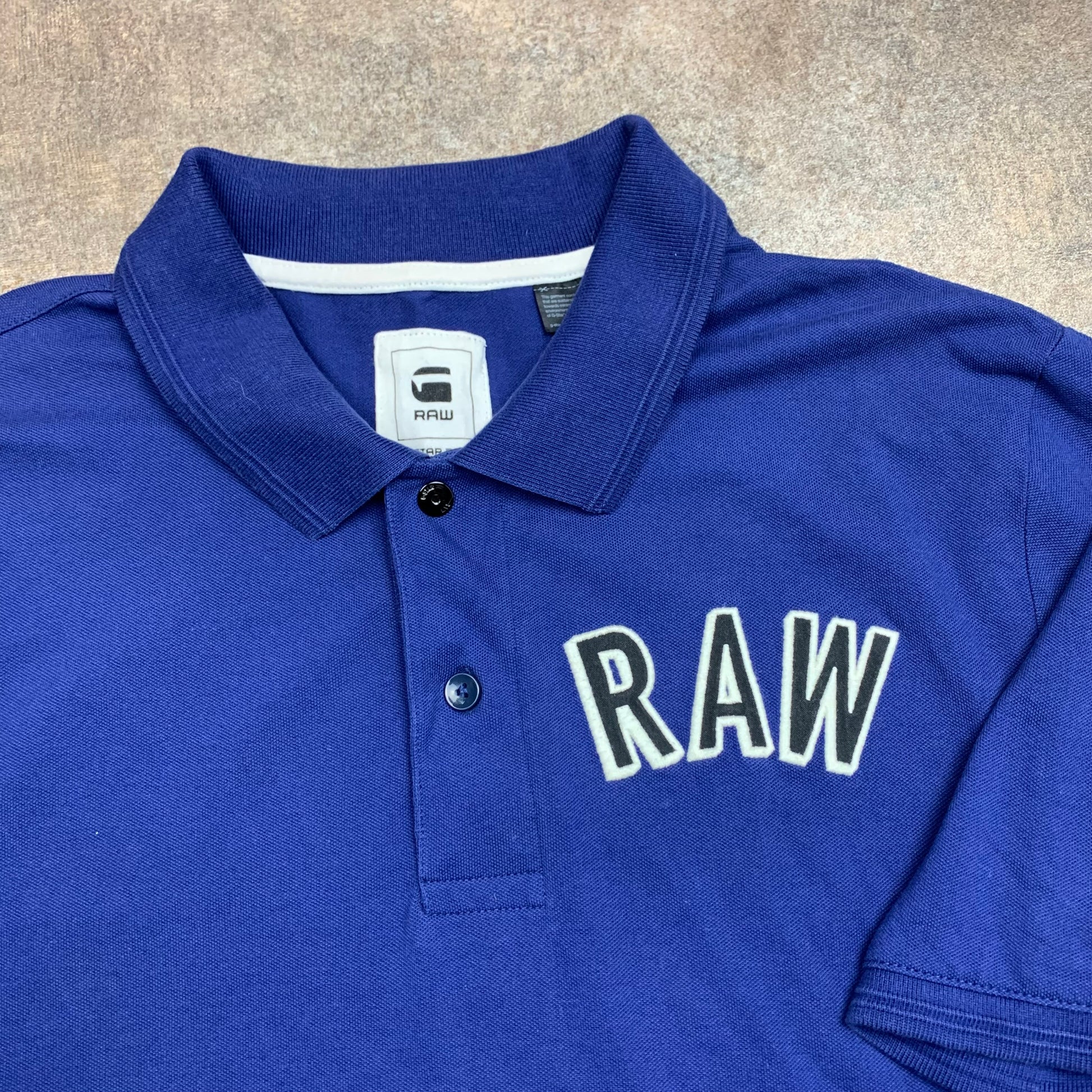 Sick G-Star polo with a RAW graphic on the front in white/black, coloured navy all over & in excellent second hand condition with little to no wear.