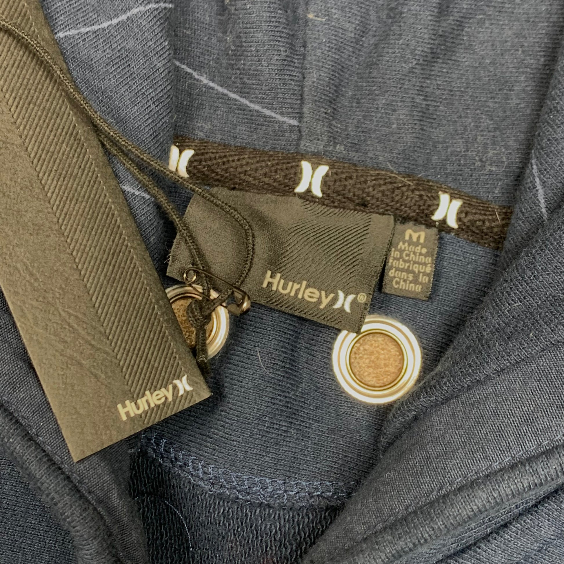 Grunge style Hurley hoodie with faint printed graphics front & back, coloured navy all over, branded lining inside the hood, distressed detailing & brand new with tags aside from fading on the front as shown.