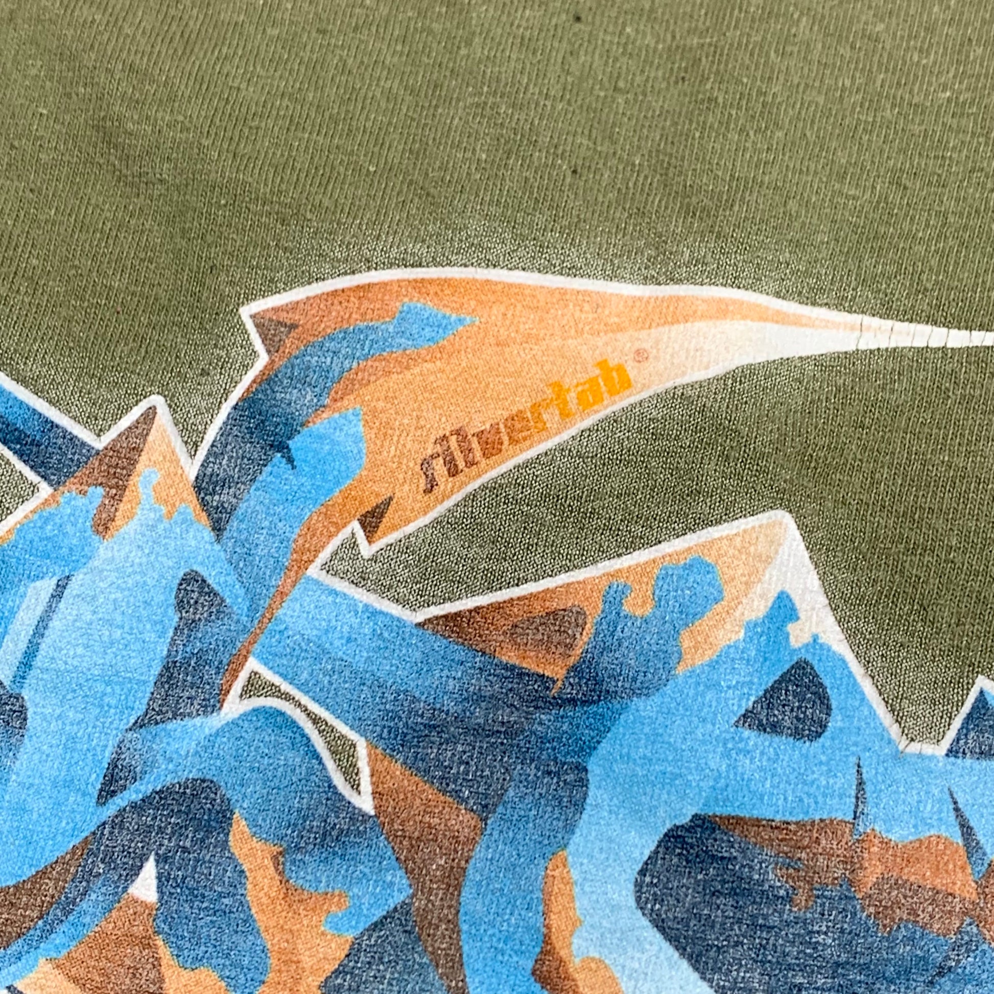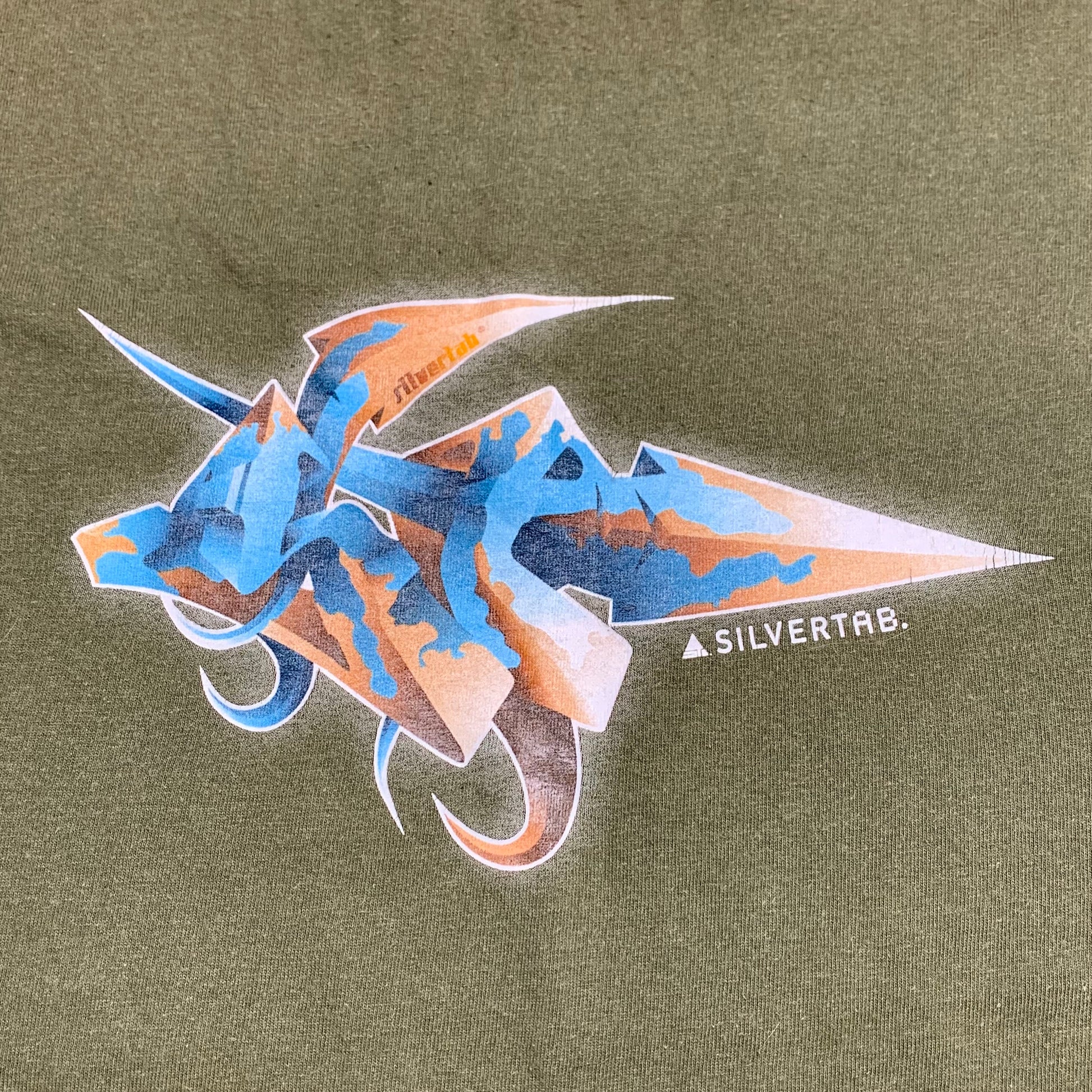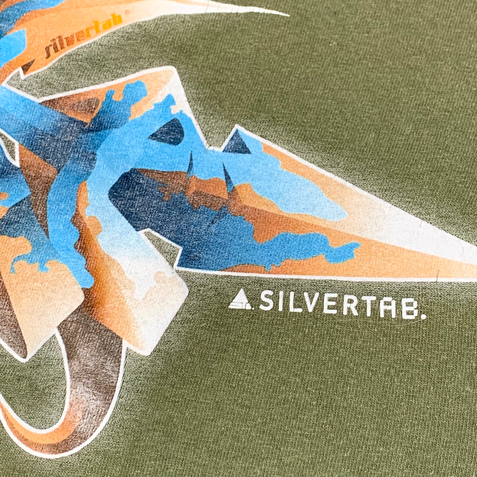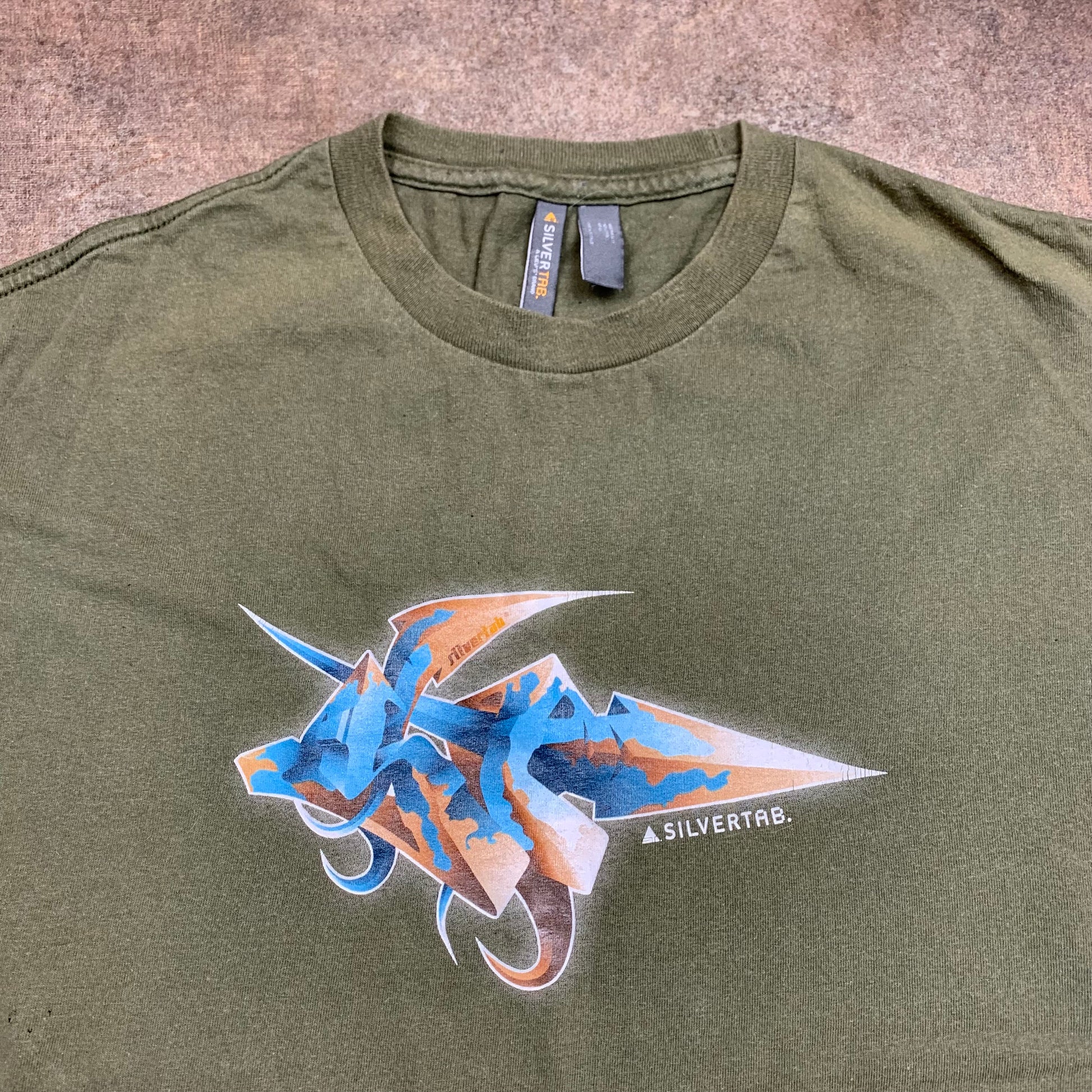 Rare Silvertab tee with a printed graphic on the front, coloured khaki all over & in fair condition with fading on the sleeve & multiple small holes as shown.