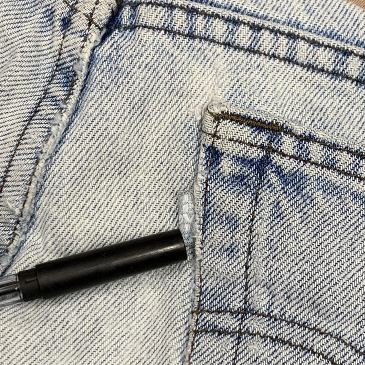 Silvertabs going cheap coloured light blue all over, a Levi’s silver tab on the back right pocket, in satisfactory second hand condition with wear/repair as shown.