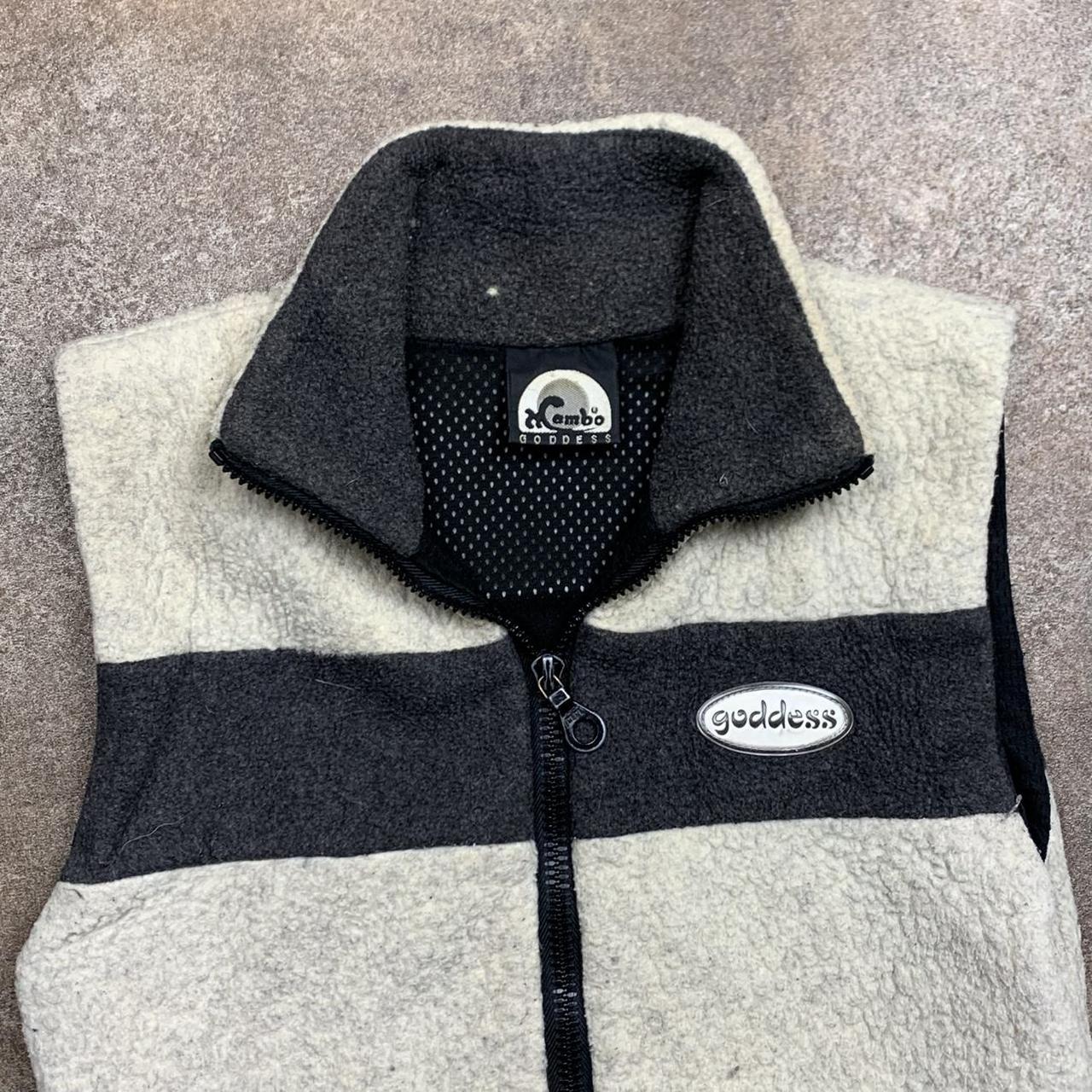 Perfect Mambo top for the winter with a warm fur material coloured white/cream all over, black/grey panelling front & back and in very good second hand condition with some blue marks on the top of the back as shown.