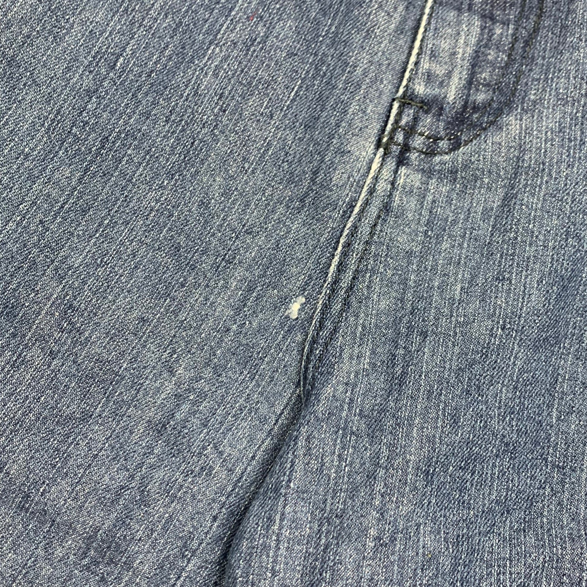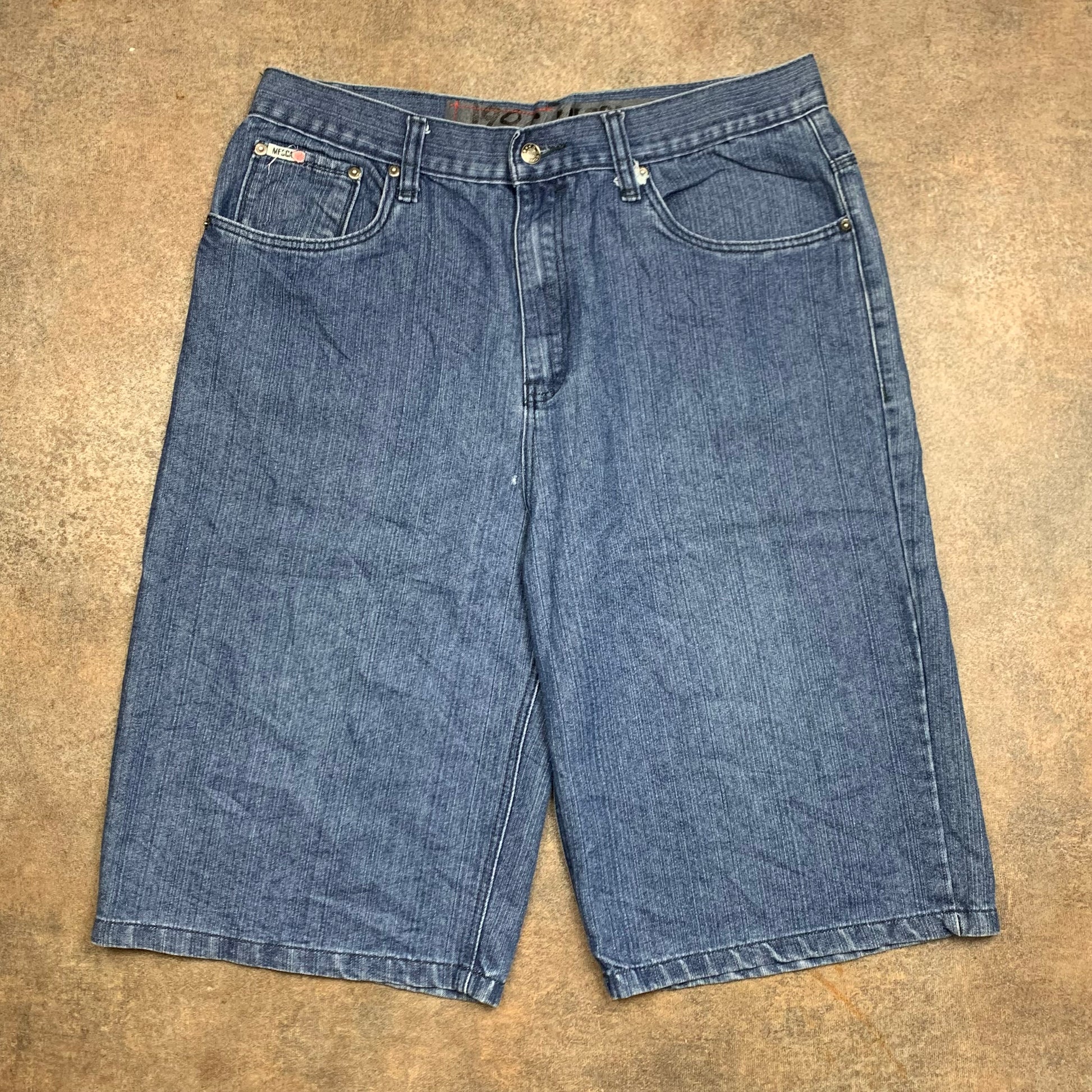Rare pair of vintage Mecca jorts with a branded tab in the front pocket, embroidery across the back pockets, coloured blue/grey all over & in excellent second hand condition with a small pluck to the denim as shown.