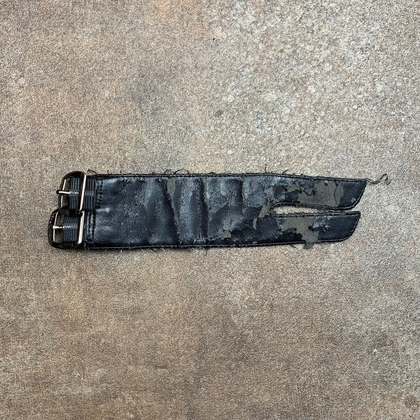 Rare New Rock accessory with a spiderweb graphic side, branded buckles, a black leather side & in ok second hand condition with leather cracking as shown. Leather comes off when worn.
