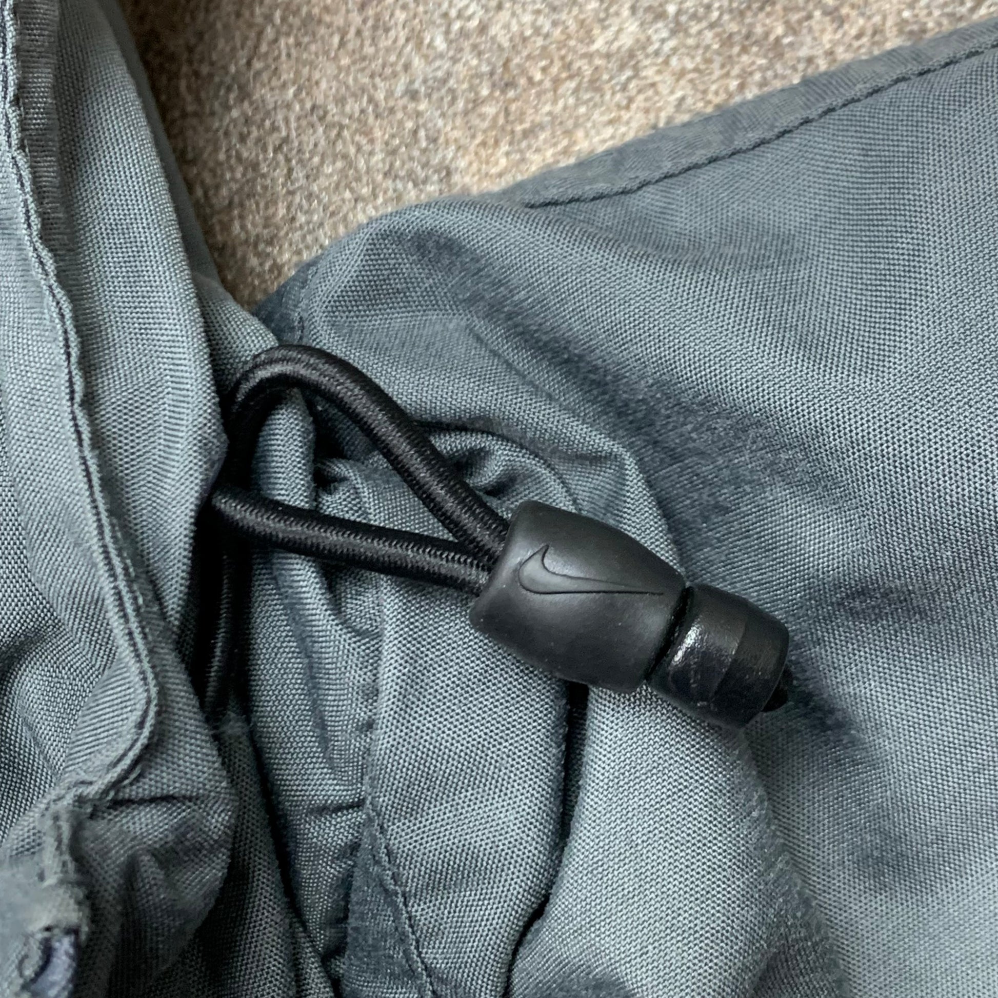 Vintage Nike silver label coat with a small embroidered logo on the front pocket, white stripes down the sides & on the hood, coloured grey all over, lined throughout the inside, adjustable sleeve openings and waist cinches, branded zip / toggles and in great second hand condition with a mark on the sleeve as shown.