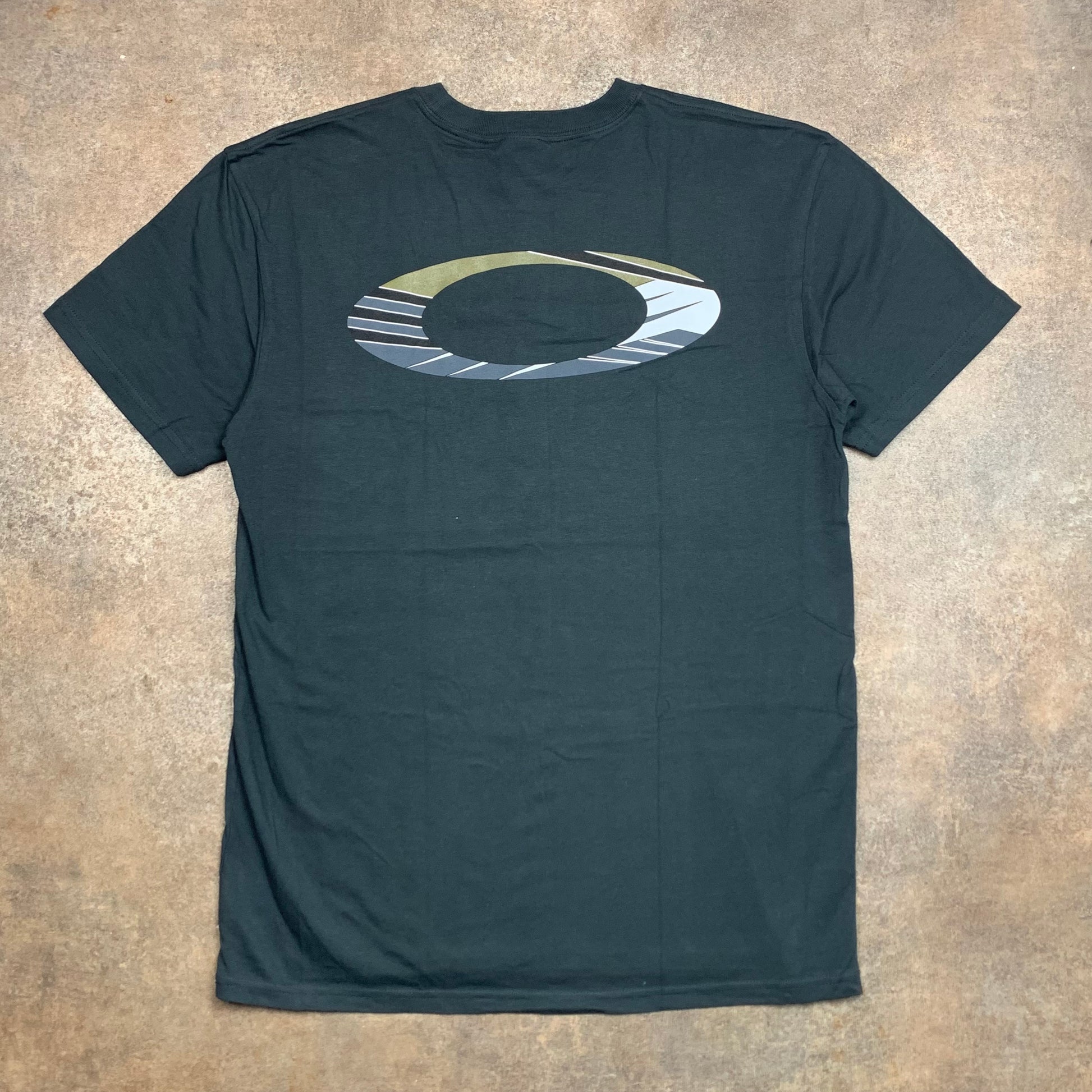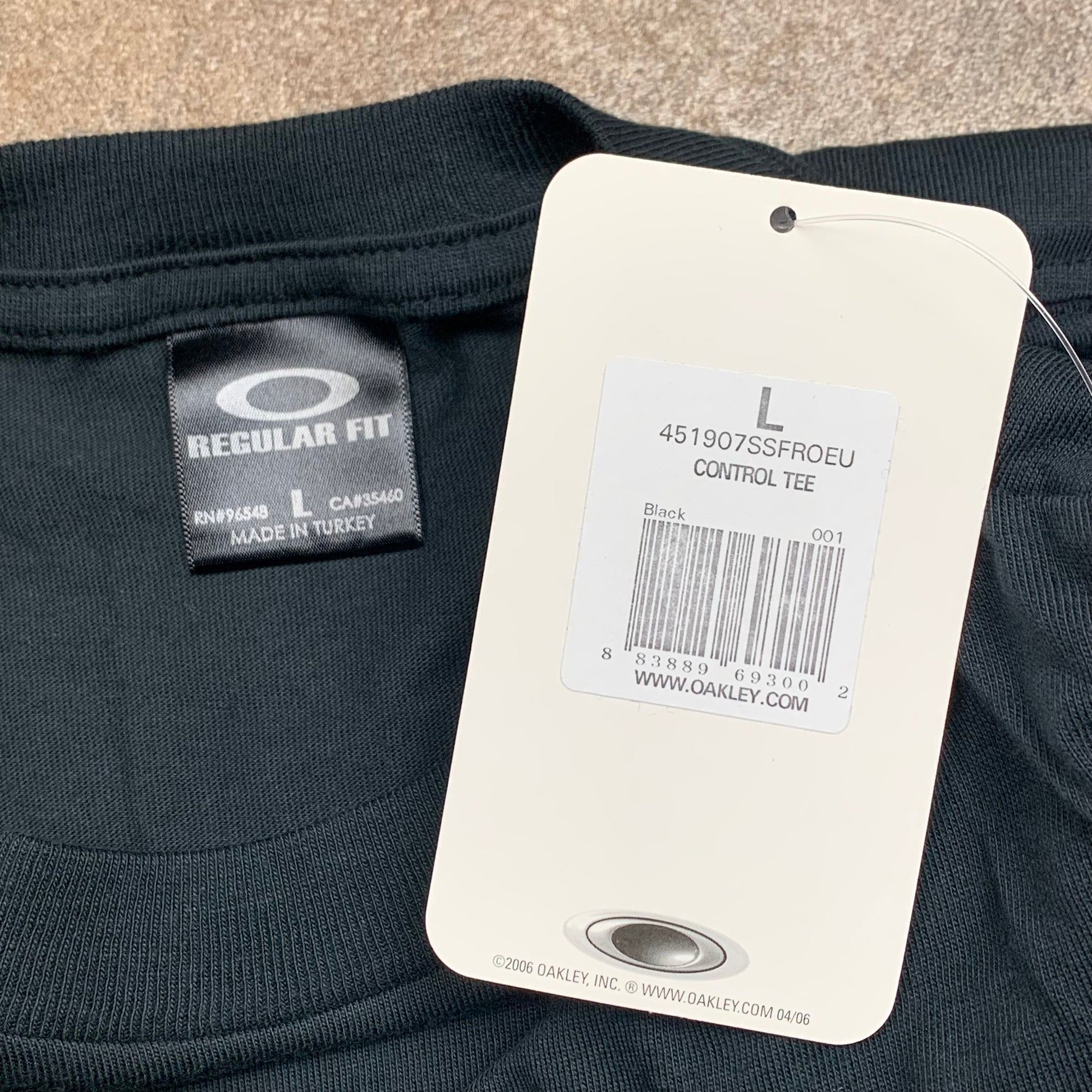 Rare Oakley tee with patterned graphics front & back, coloured black all over & brand new with tags.