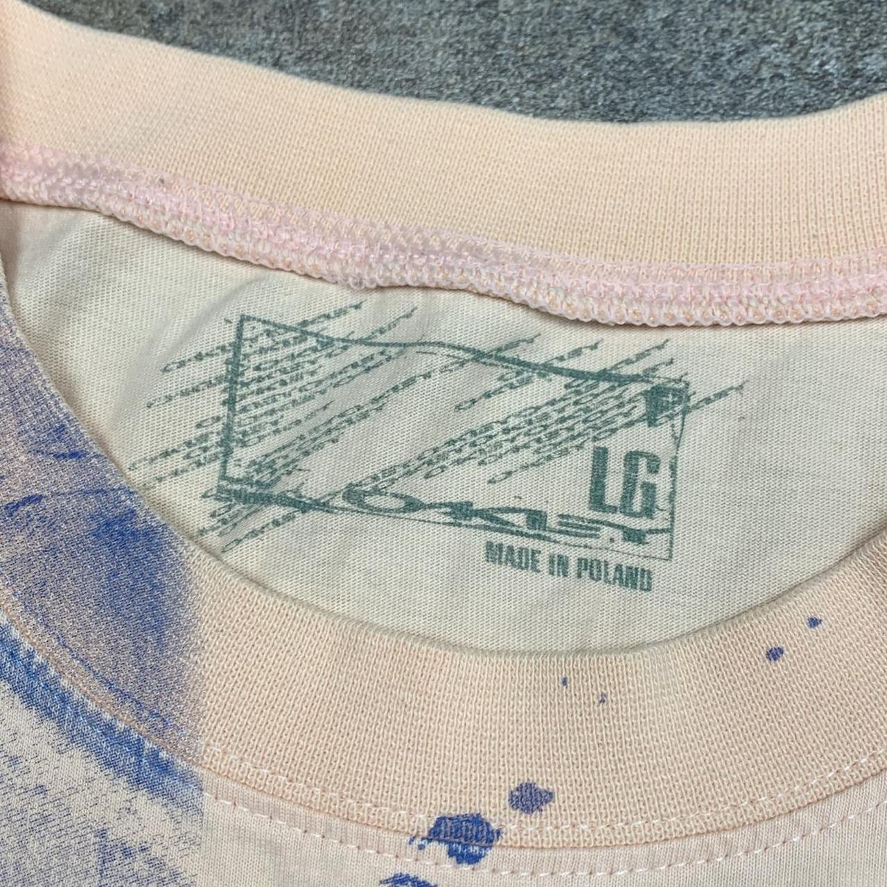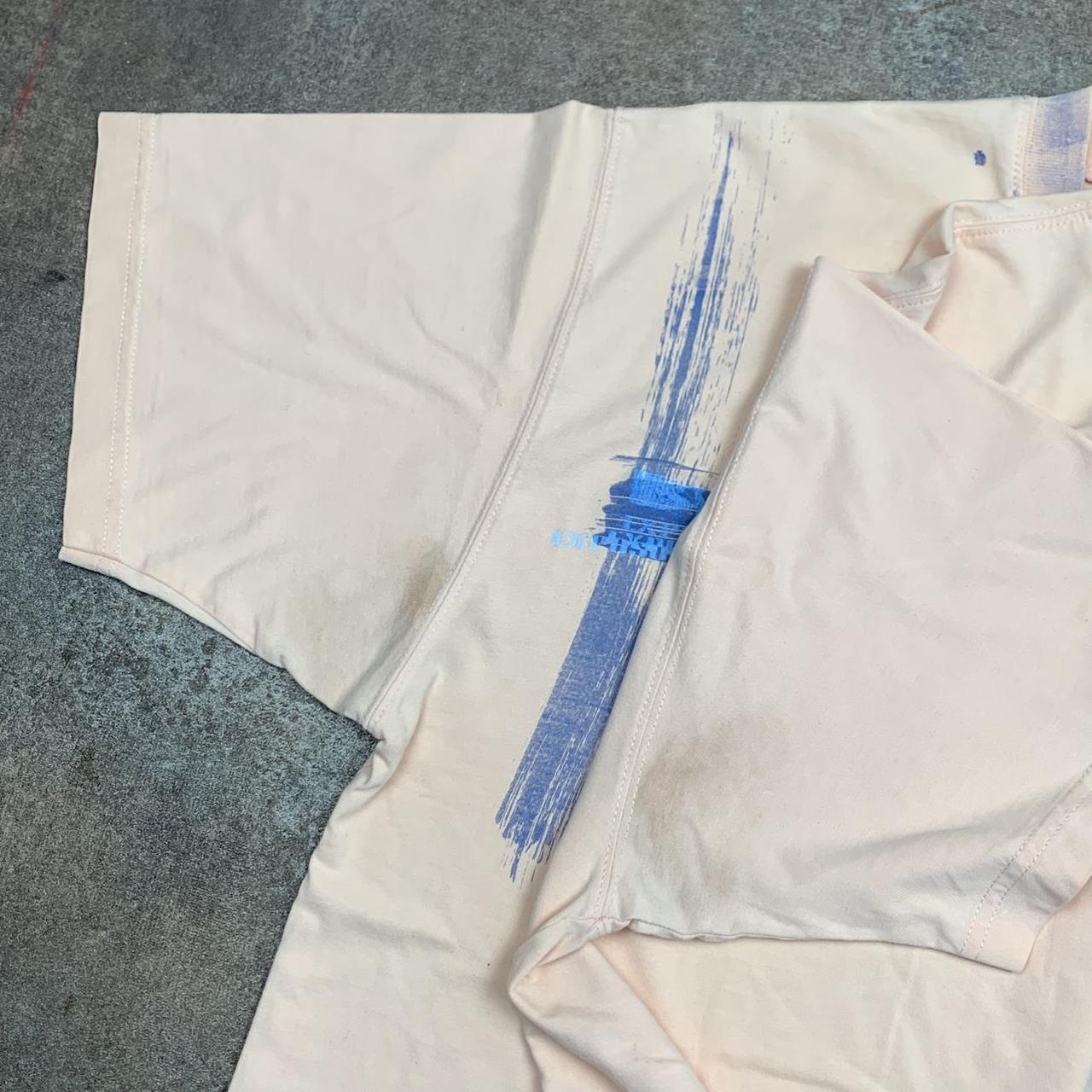 2000s Oakley tee perfect for the summer with a large blue/turquoise graphic across the front, coloured pale pink/salmon all over and in good second hand condition with wear on the armpits as shown.