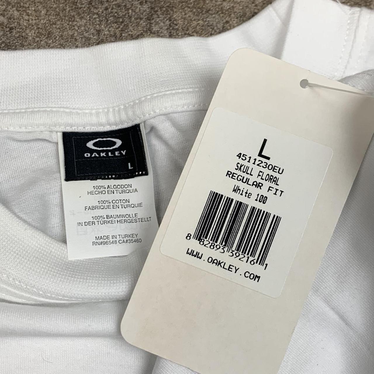 Flower & skull logo graphics in fine Oakley spell out prints coloured navy/blue, coloured white all over & brand new with tags.