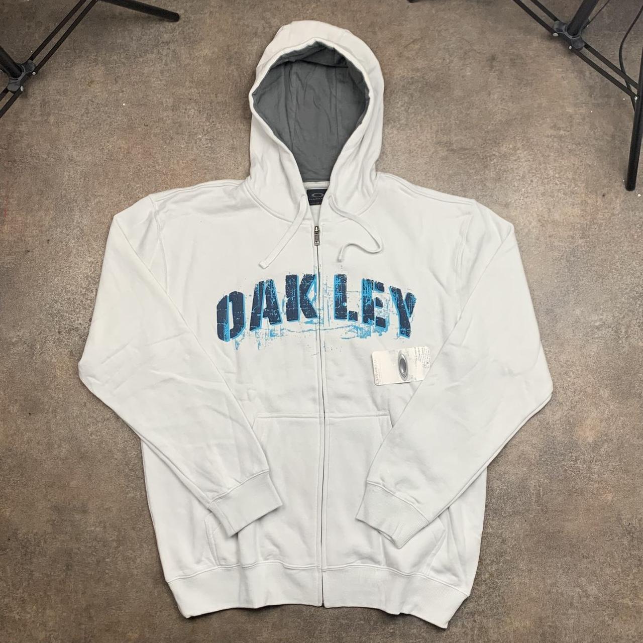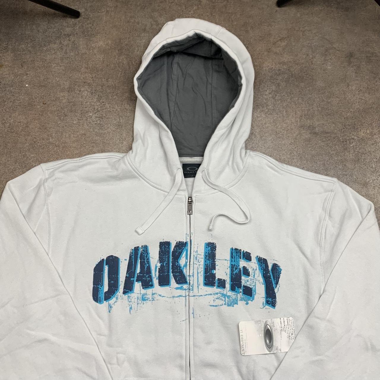 Sick Oakley hoodie with a spell out logo across the front in navy/blue, coloured white all over & brand new with tags.