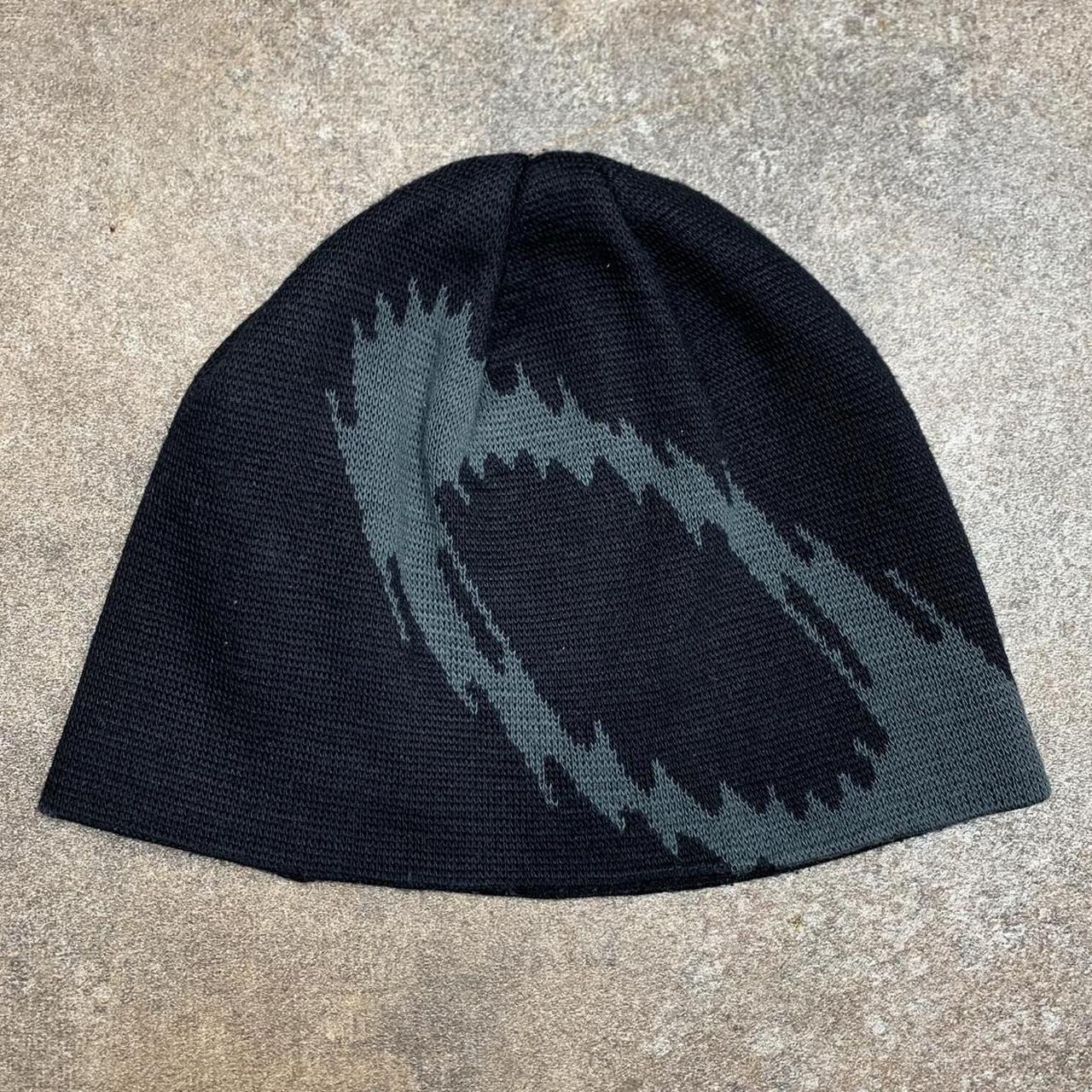 Sick 2000s Oakley beanie with an oversized static O logo in grey, coloured black all over & in excellent second hand condition with minimal wear.