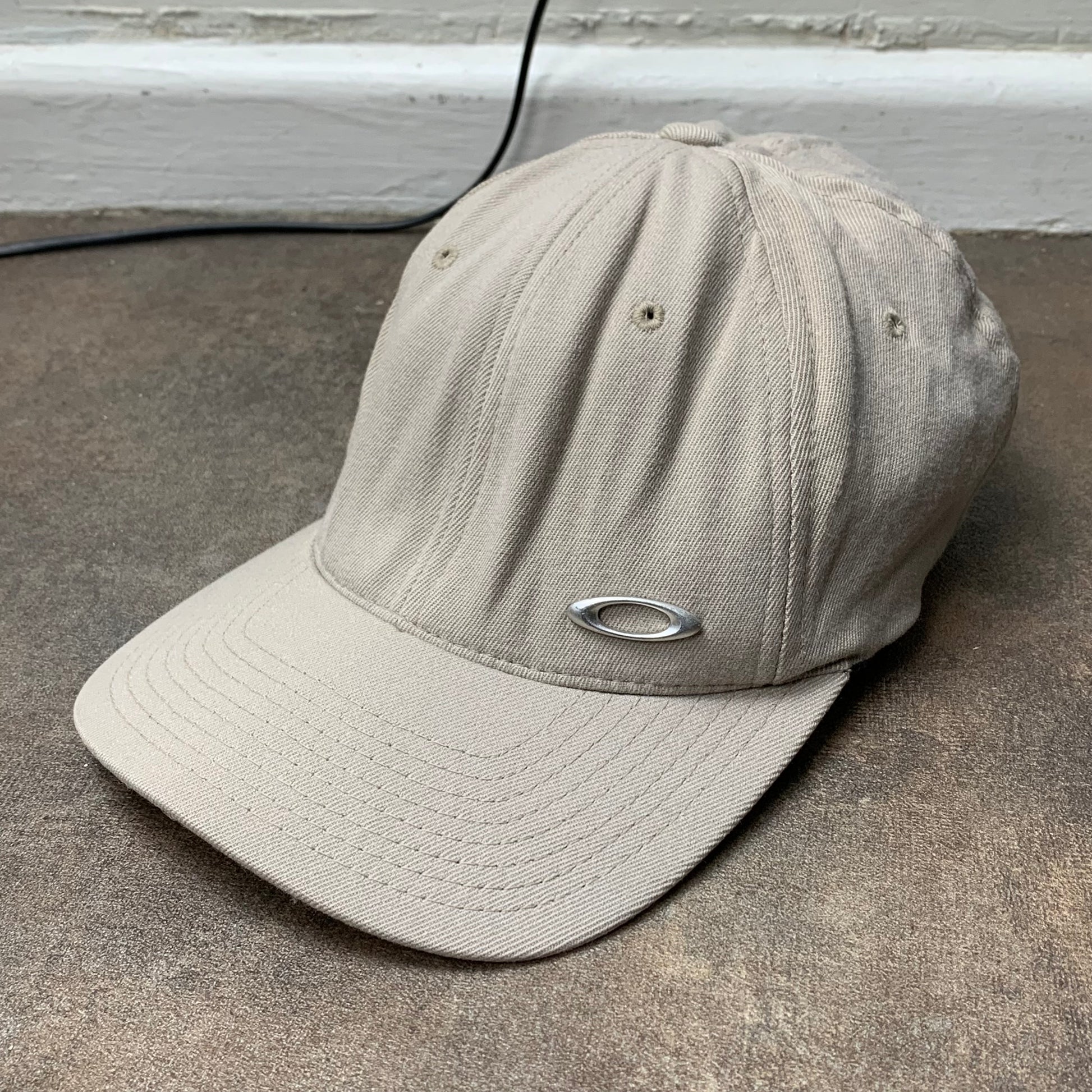Rare 90s Oakley cap with a metallic logo icon on the front, coloured cream all over & in great second hand condition with creasing to the front panels.