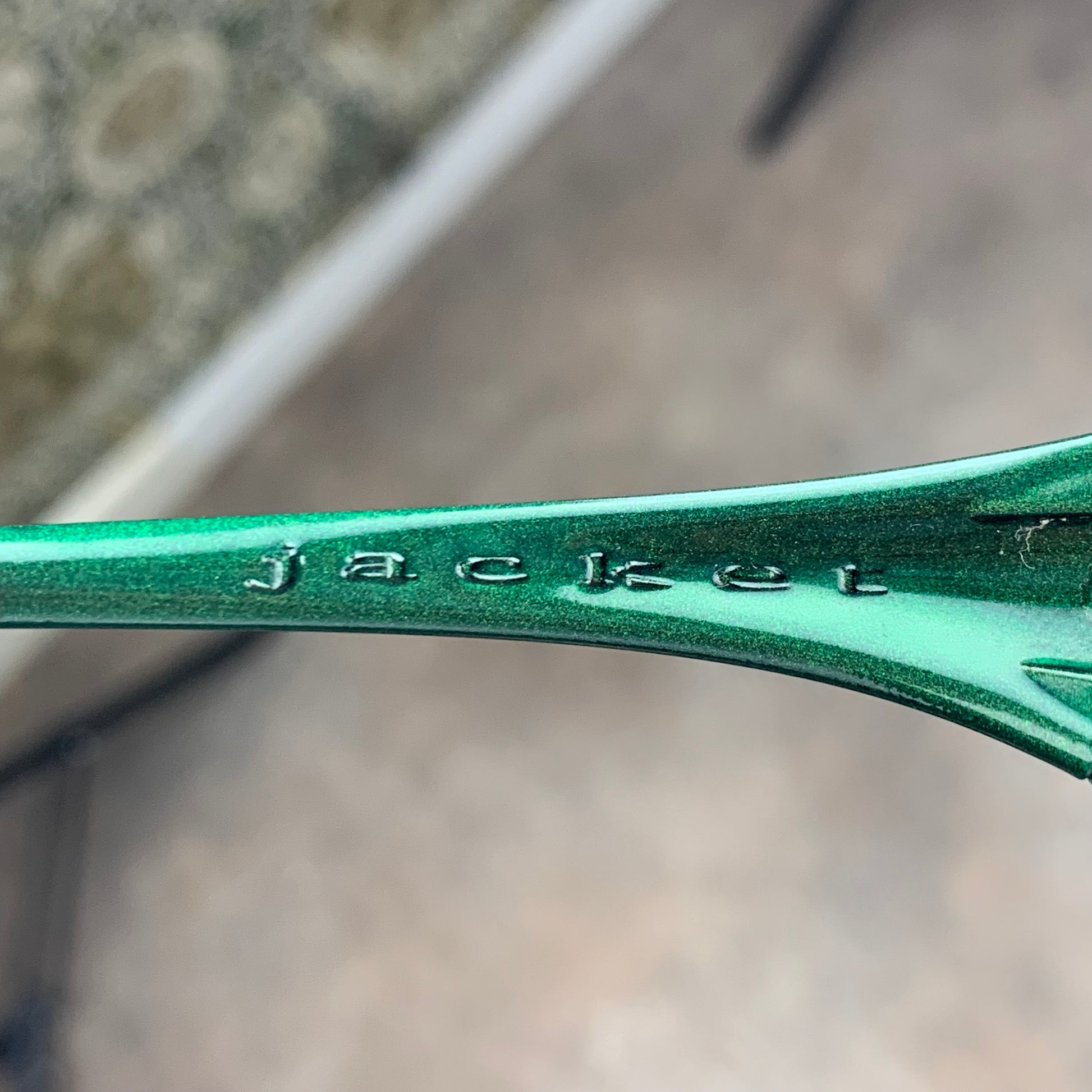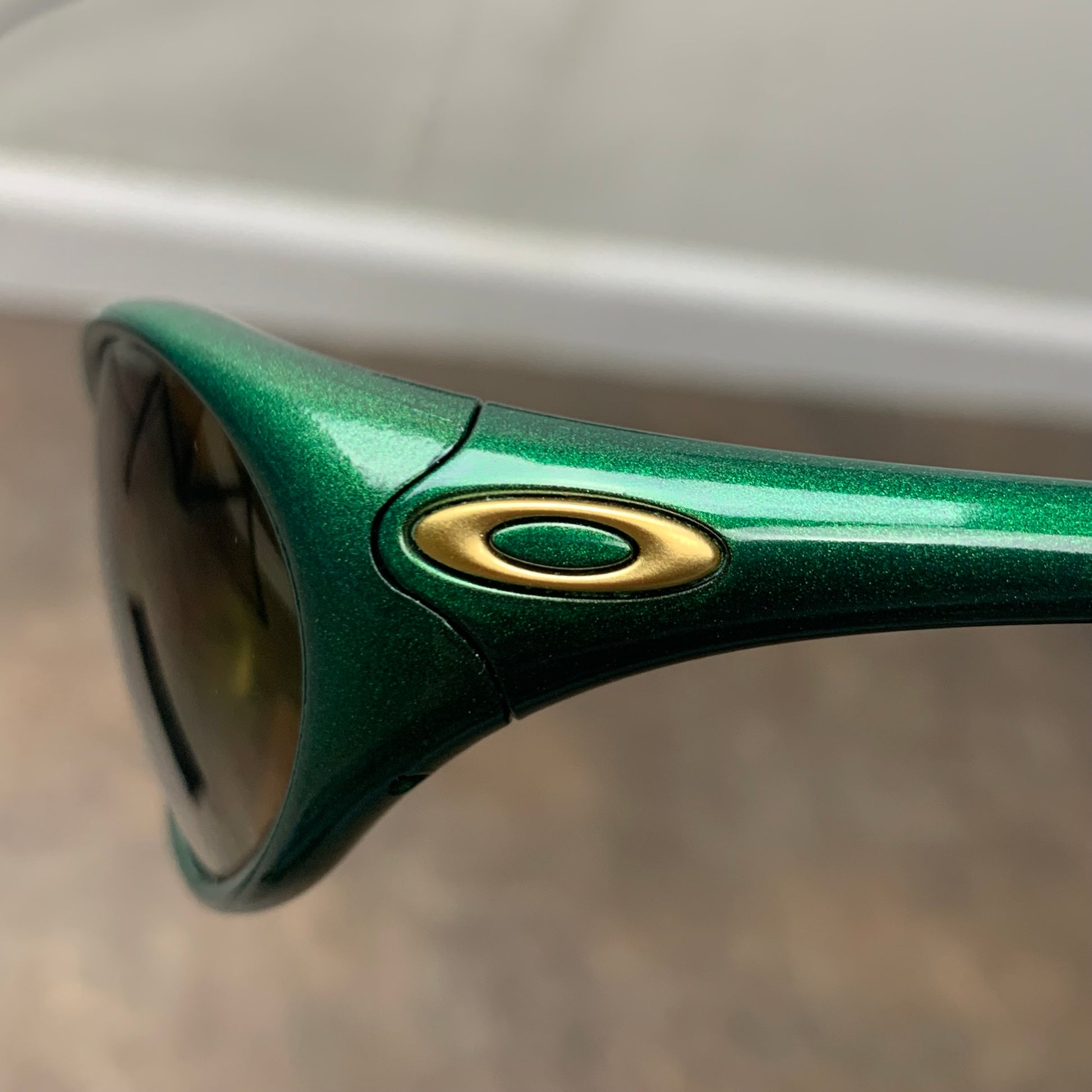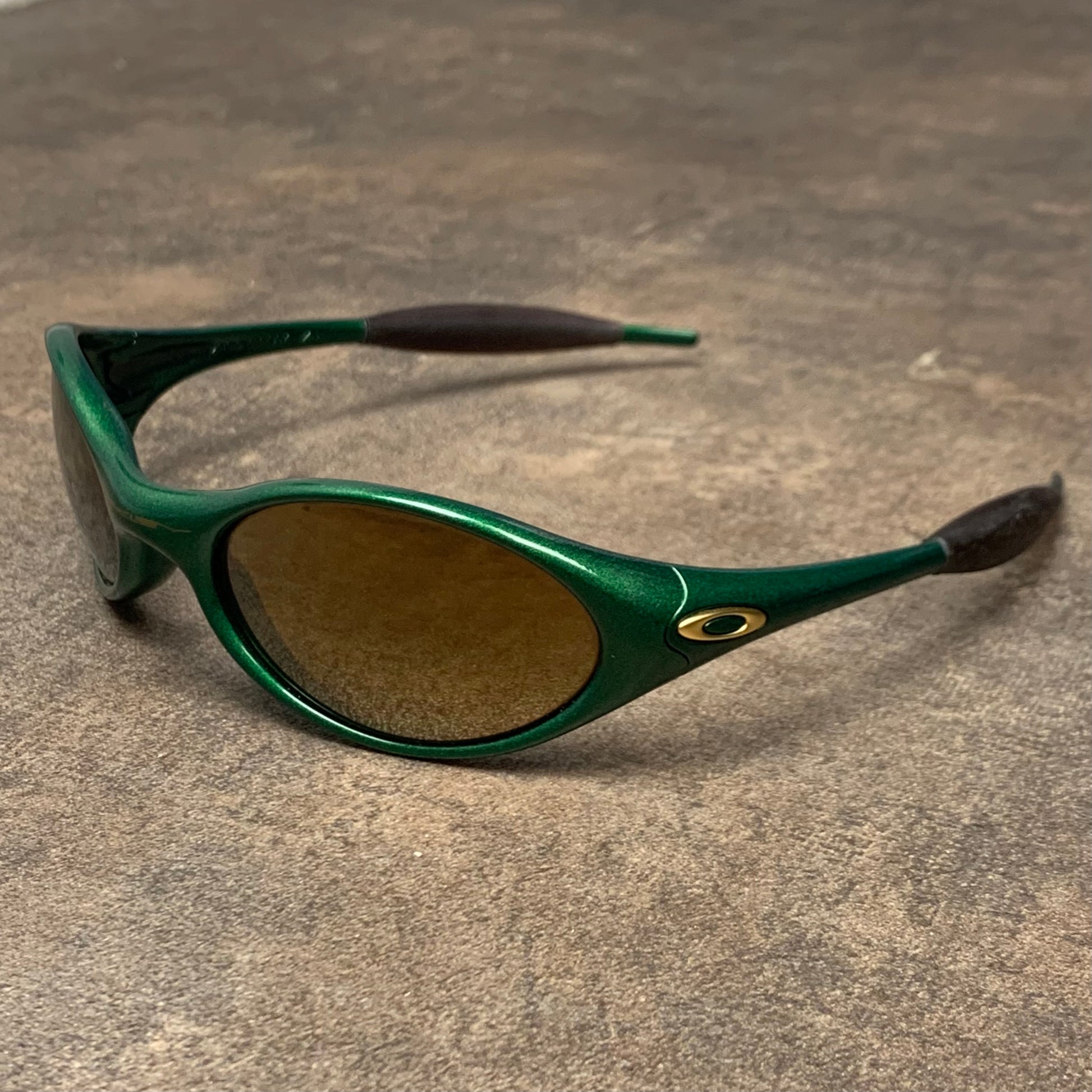1st generation of straight jackets with a moss green frame & gold iridium lenses.