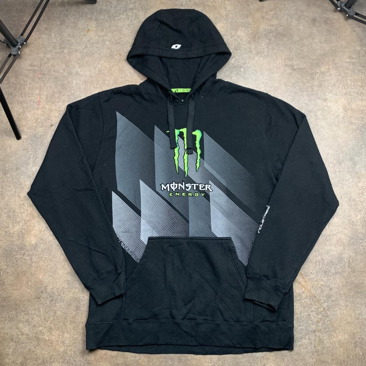 One Industries x Monster Energy graphic hoodie with monster graphics on the front, a patch on the bottom of the back, coloured black all over with grey/green detailing on the graphics & in excellent second hand condition with minimal wear as shown.