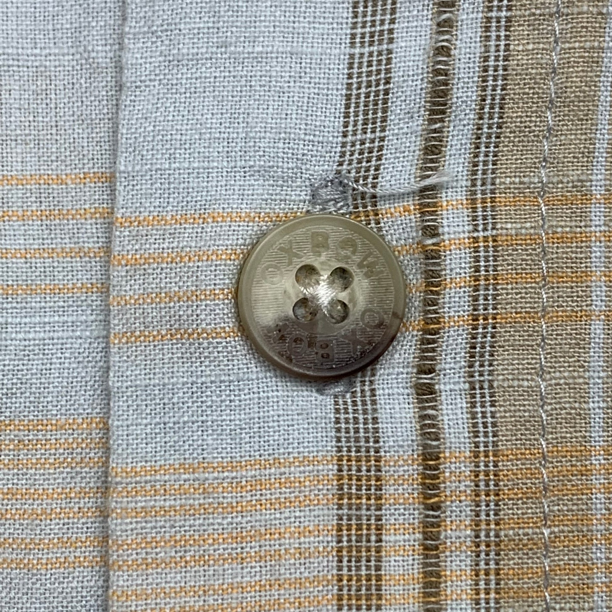 Vintage surfwear shirt with a large embroidered graphic at the top of the back / logo on the front pocket, plaid white / blue / cream pattern all over and brand new with tags.