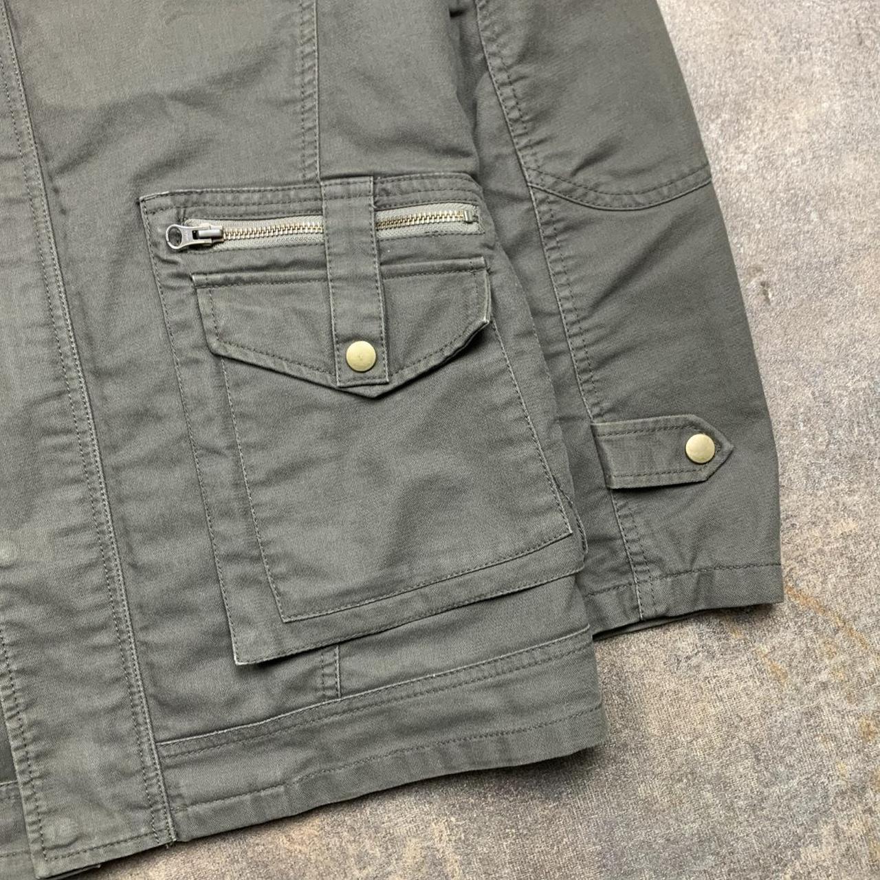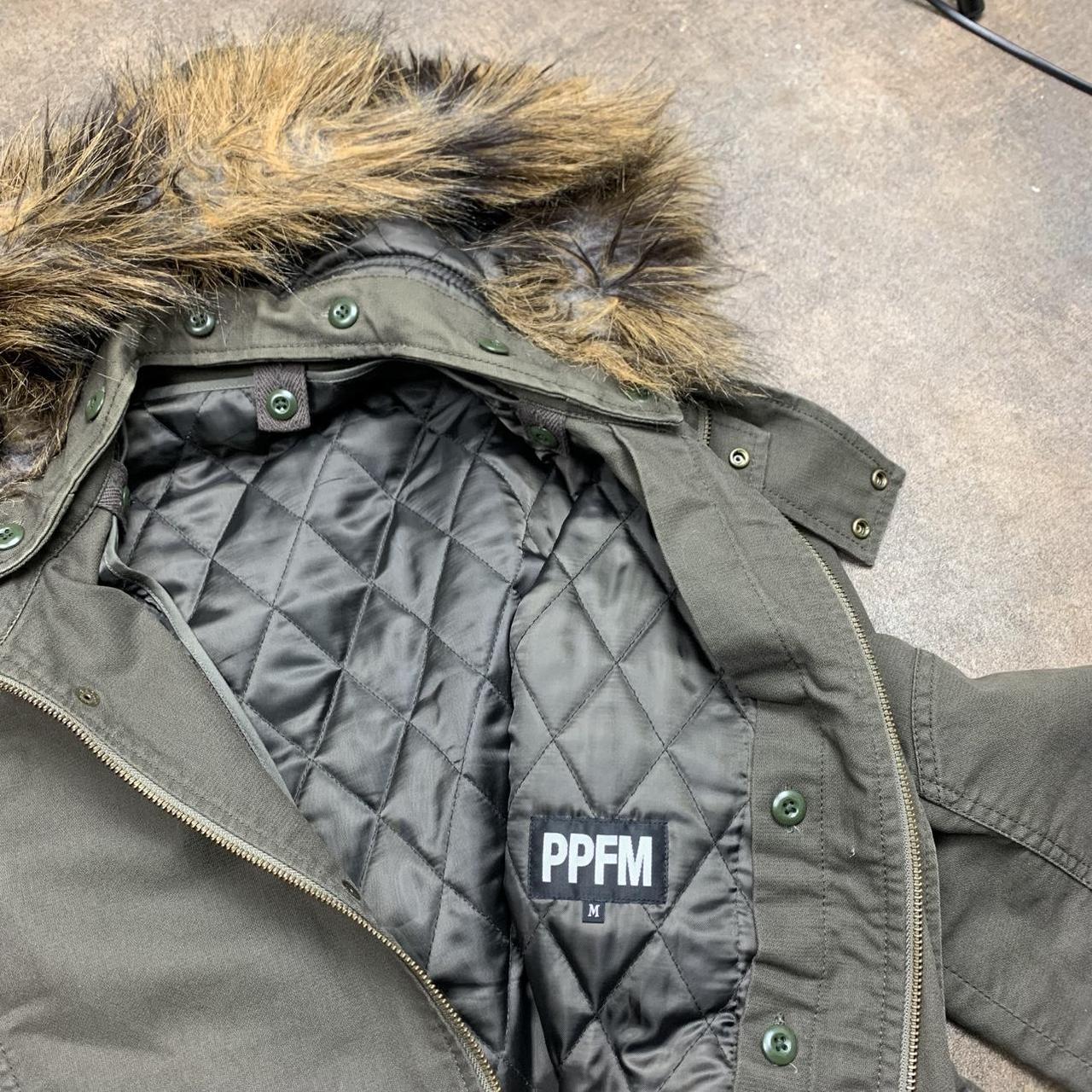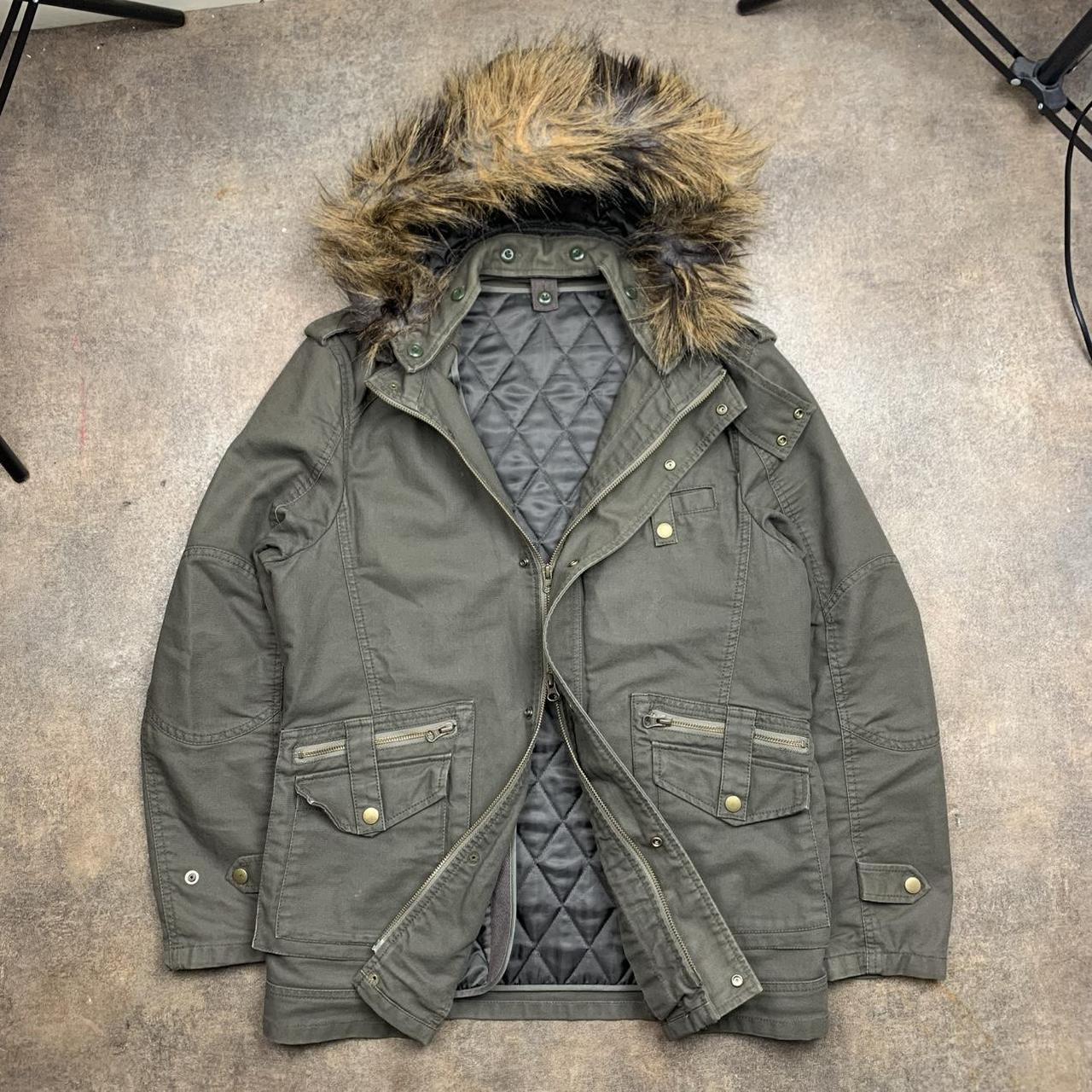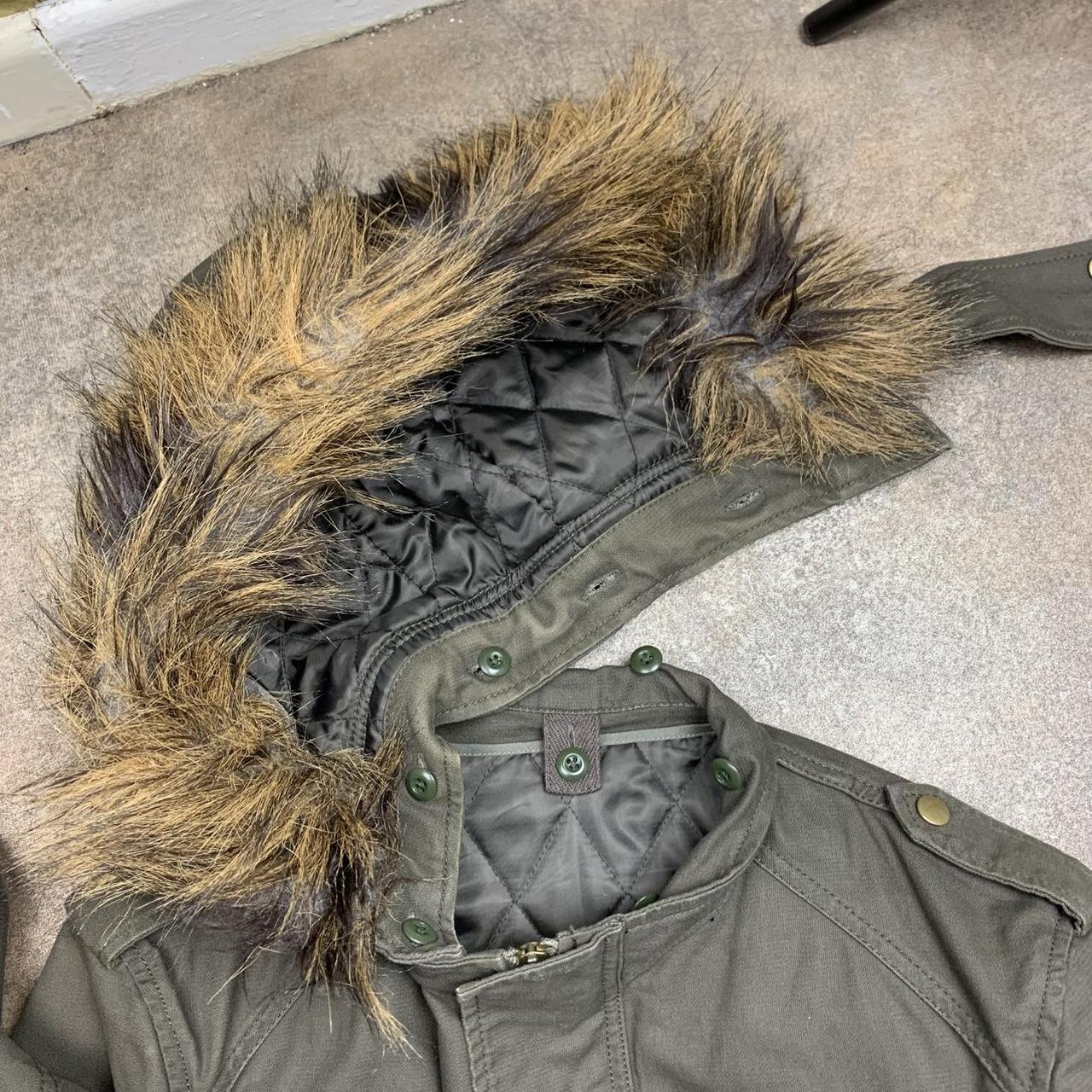 Crazy PPFM fur hood coat with double zips on the front, tons of utilisations all over, lined throughout the inside, coloured khaki/dark green all over & in excellent second hand condition with minimal wear.