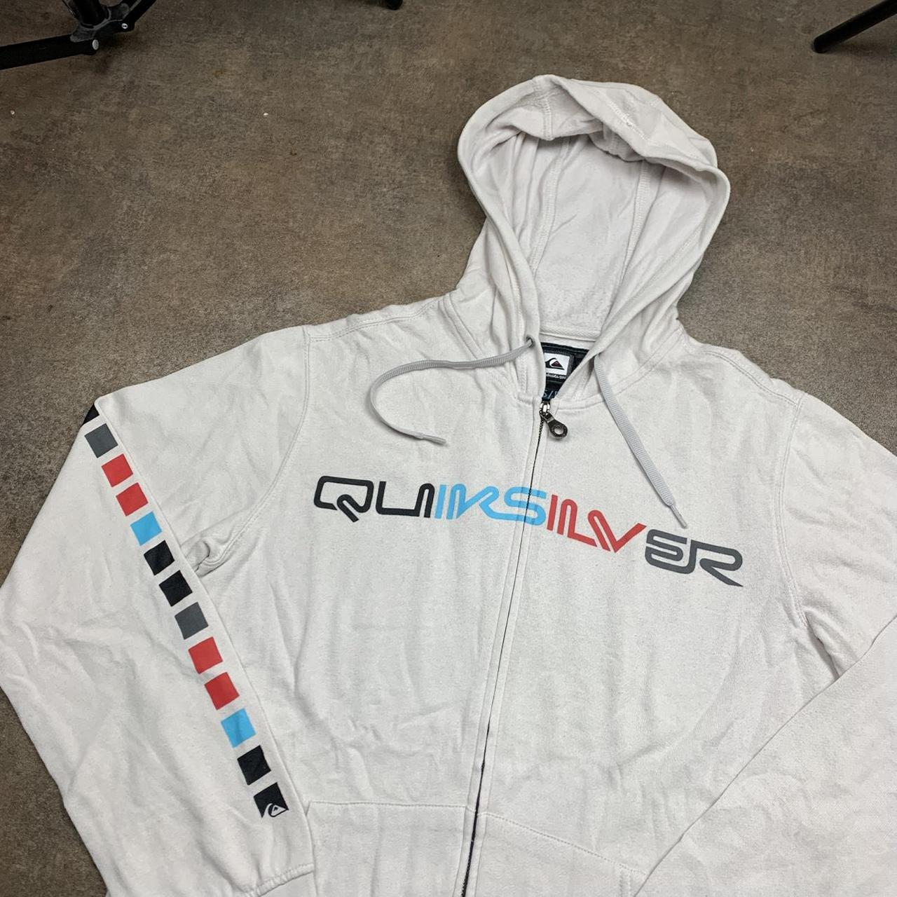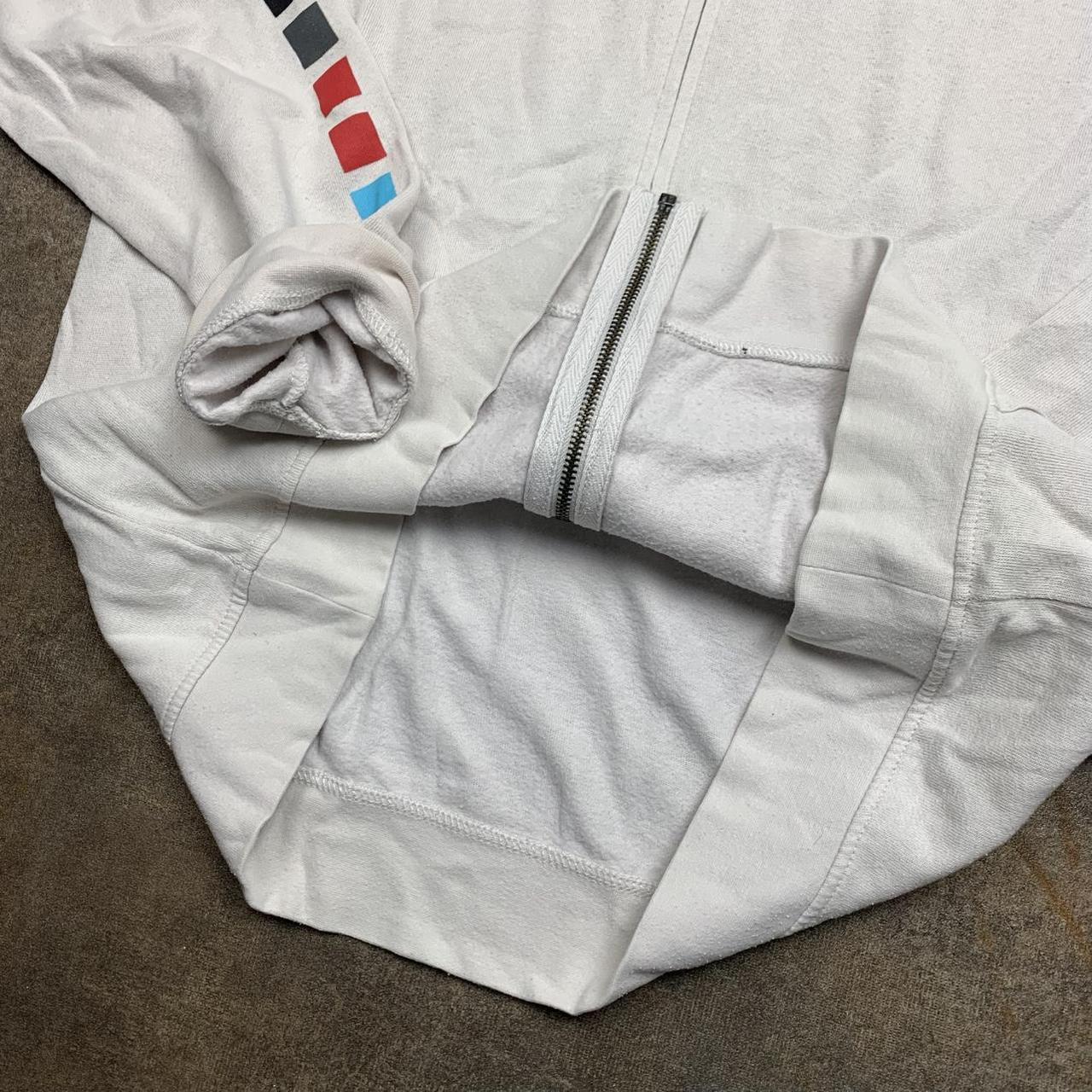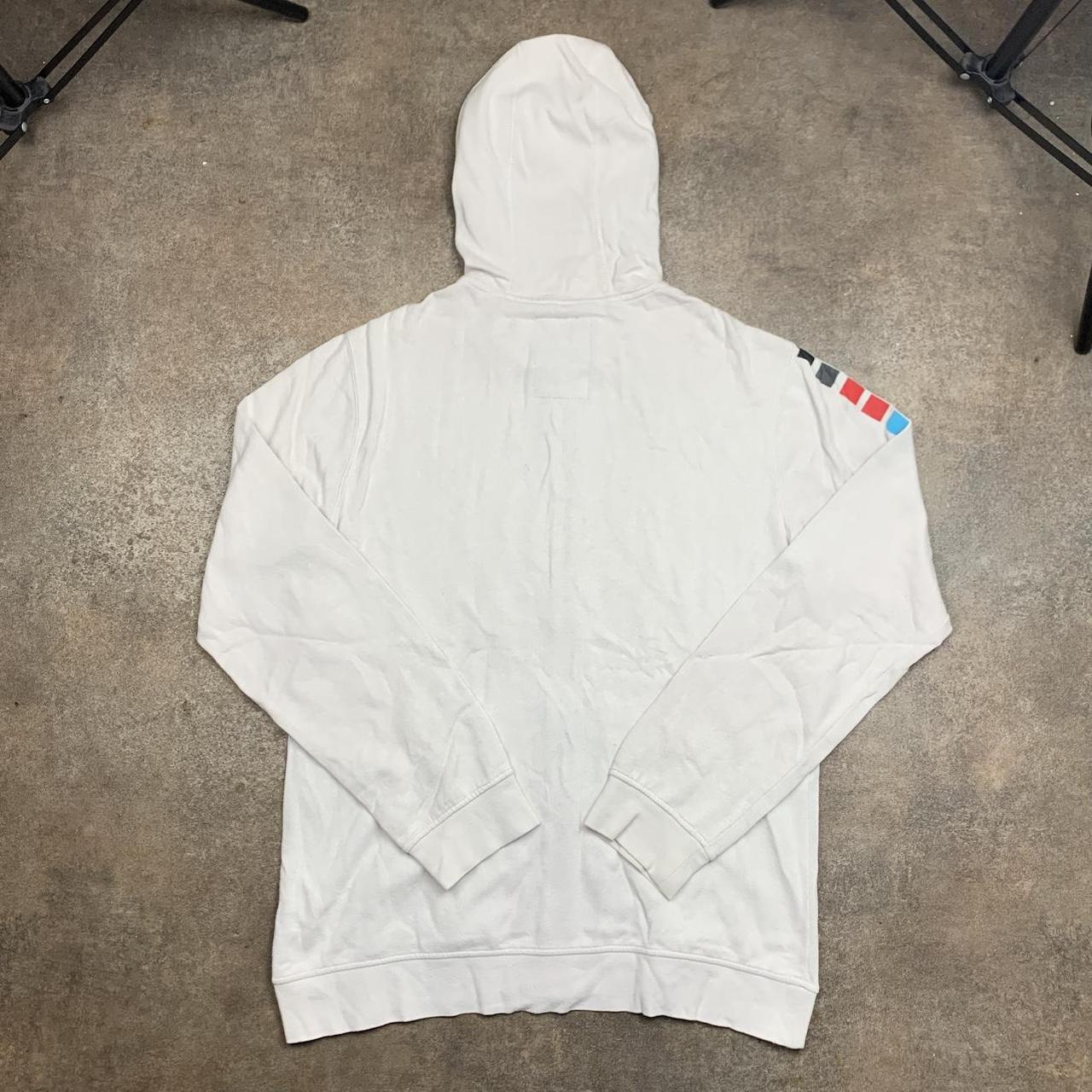 Multicoloured graphics on the front & the sleeve, branded tab on the front pocket, coloured white all over & in good second hand condition with barely noticeable stains.