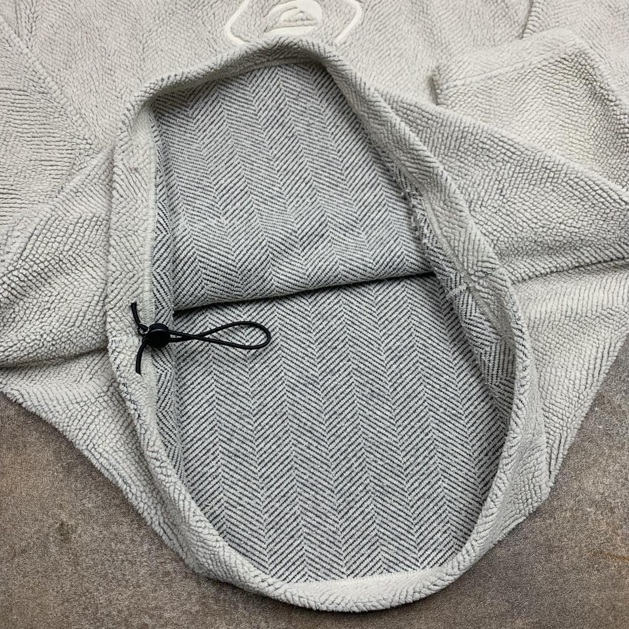 Quiksilver fleece perfect for the winter with a logo graphic detailed on the back, an embroidered spell out on the front, waist cinches, coloured cream/white all over & in excellent second hand condition with minimal wear.