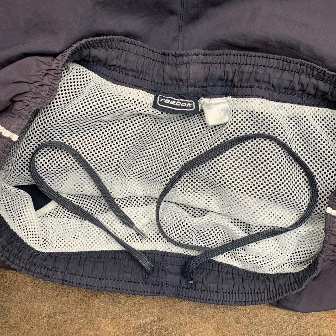 Sick pair of Reebok jogger shorts with graphics & panelling down both legs, swim netting throughout the inside, coloured navy all over with fading on the front & in great second hand condition. Open to offers!