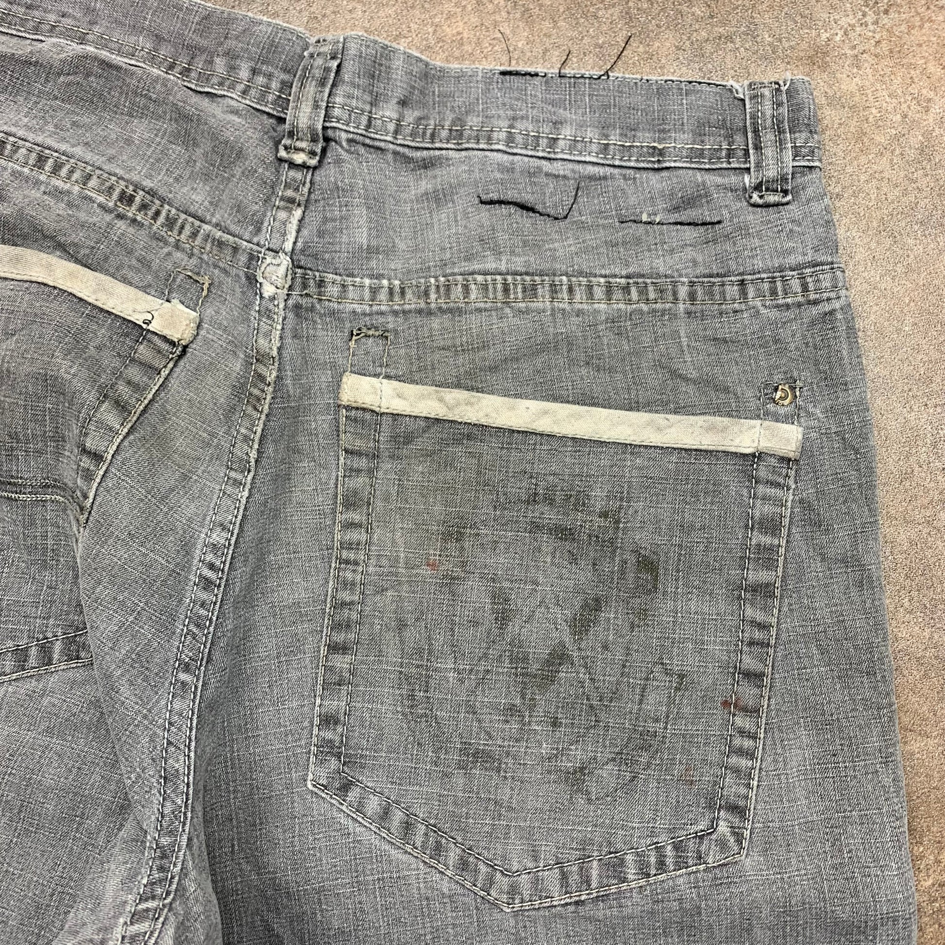 Rare Southpole gold tab jorts with a faded graphic on the back right pocket, coloured washed grey all over, baggy fit & in great second hand condition with wear as shown.