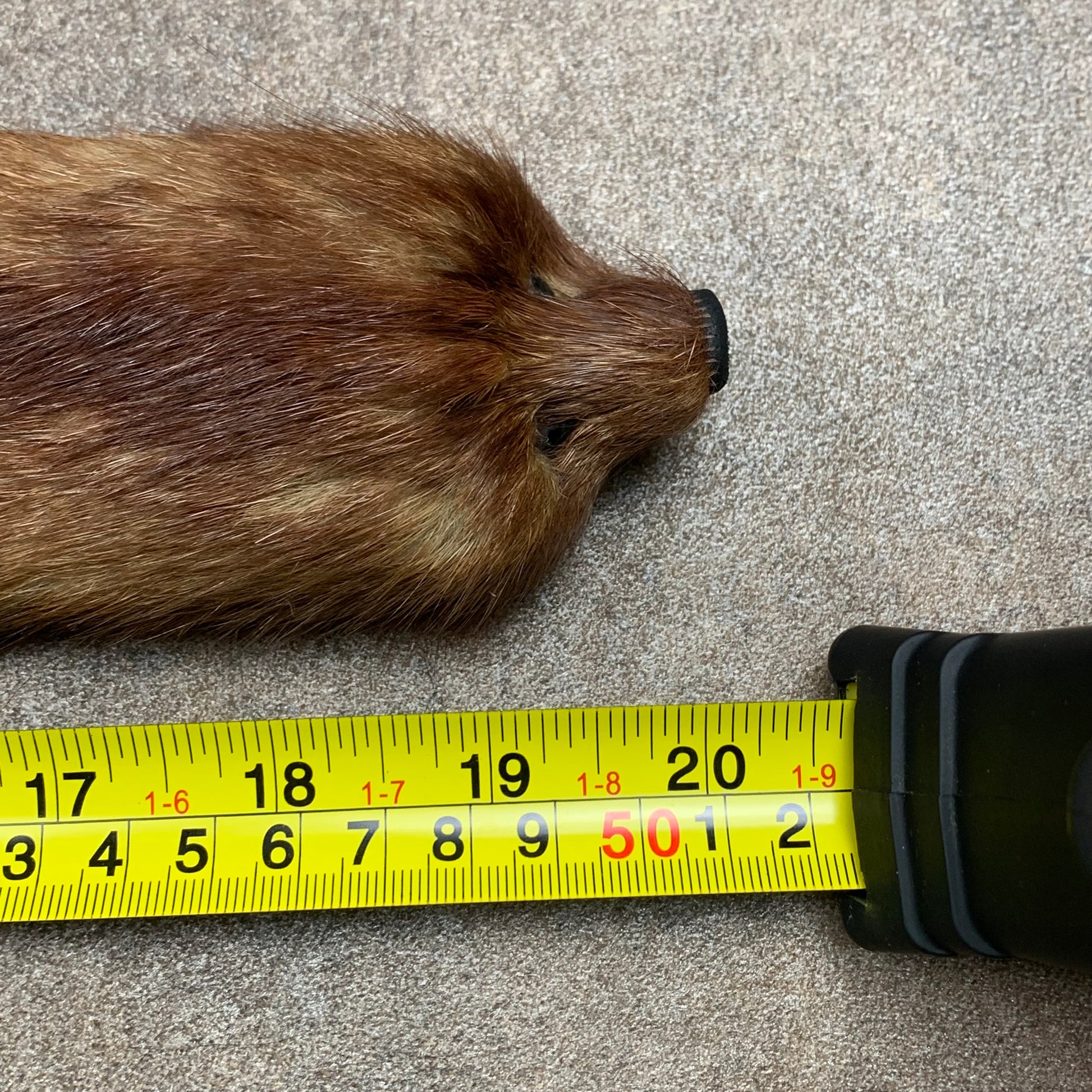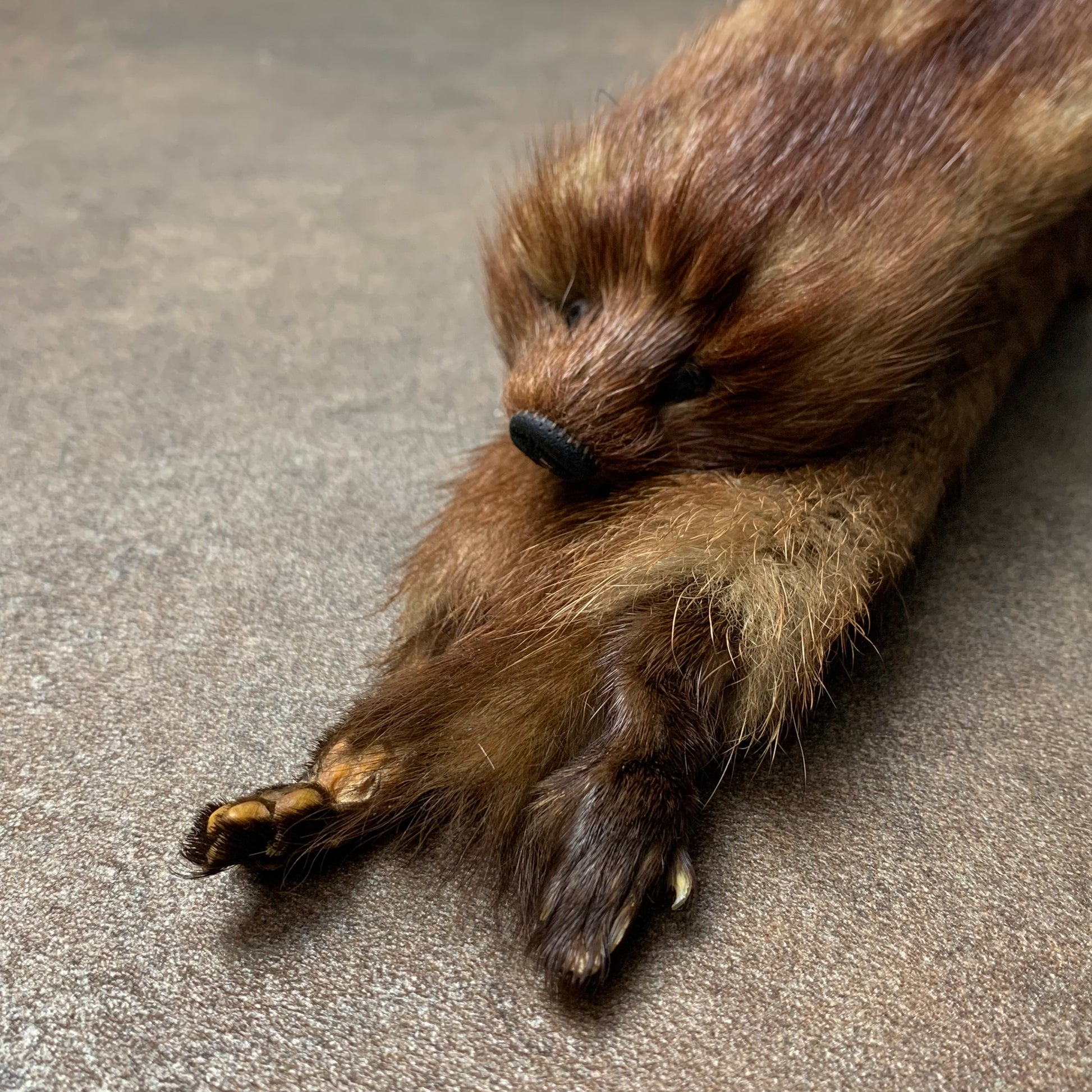 Taxidermized brown mink scarf in excellent second hand condition with little to no wear. Face taxidermy quality 7/10.