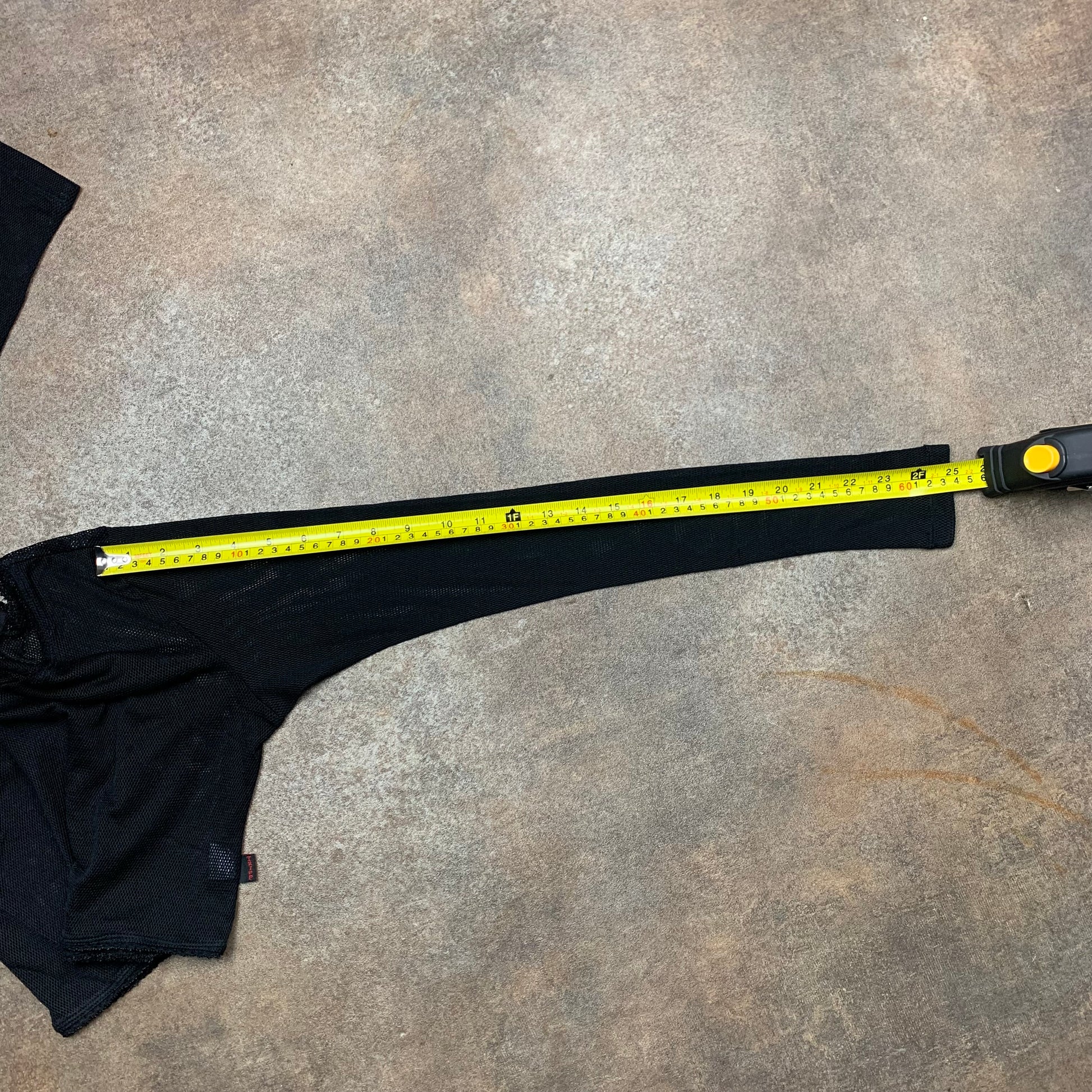 Rare Tripp fishnet top with a branded tab on the side of the torso, coloured black all over and in excellent second hand condition with little to no wear.