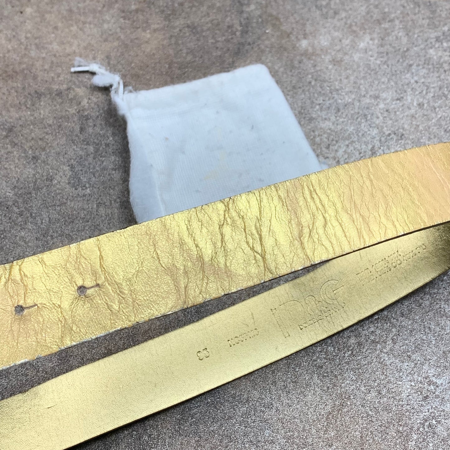 Vintage D&G belt coloured gold all over with a glitter detailed logo belt buckle and in excellent second hand condition with barely noticeable paint marks on the top and bottom of the belt and wear to the bag.